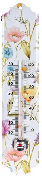 Thermomètre fleuri 6,5 x 29,5 cm, en métal, 4 modèles.