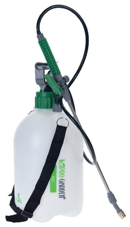 Le pulvérisateur à pression 5 L En polypropylène, avec buse en laiton, lance en acier inoxydable, système de pression, poignée extensible et ceinture de transport.