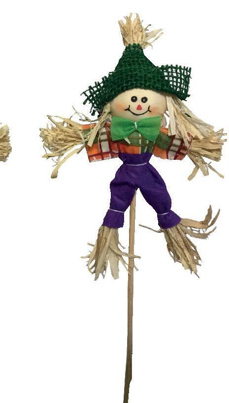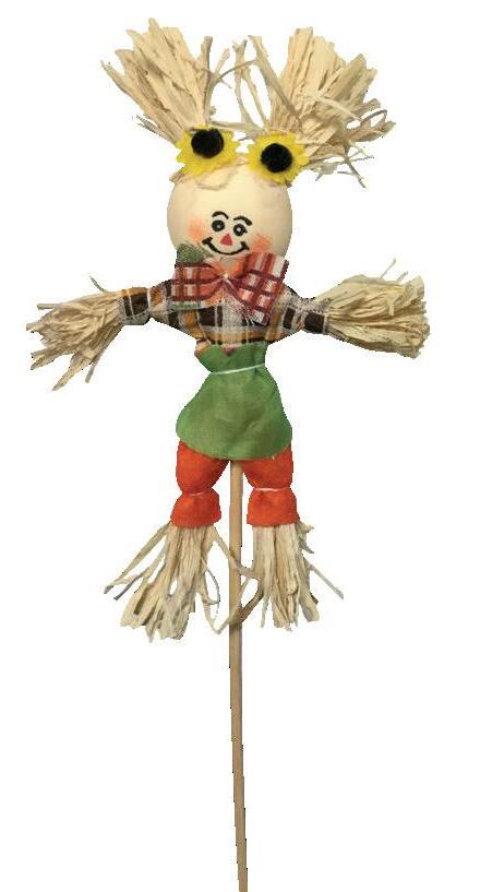 L’épouvantail 36 cm, en rafia et tissu, plusieurs modèles.