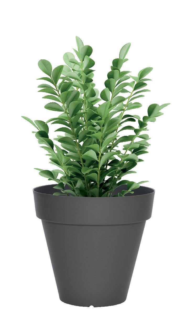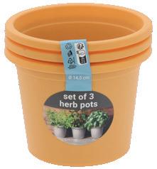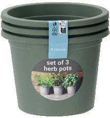 Le pot “Patio” En polypropylène, plusieurs coloris, 2,19 e en Ø 19,5 x 18 cm, 3 L, 4,29 e en Ø 29,5 x 27 cm, 10,5 L, 8,99 e en Ø 39 x 36 cm, 25 L et 15,99 e en Ø 49 x 45 cm, 50 L.