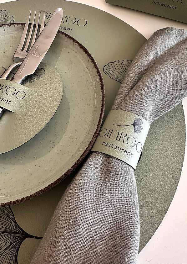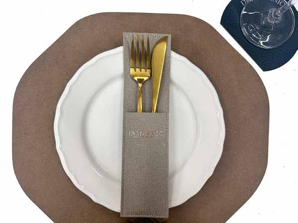 Sp Menu placemats and coasters occupy a special place in the ca tering area they’re made of recycled leather, in many colors and textures, resistant to oil and easy to clean. In addition we can personalize your choice by ma nufacturing the shape you want as well as printing your company logo.