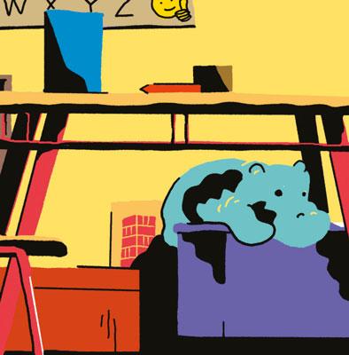 Občas se tam totiž děly opravdu zvláštní věci. Děti seděly na koberci a čekaly na hlášení školního rozhlasu. Byl to každodenní ranní rituál, kterým začínal jejich pracovní den.