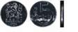 5 korun českých – 5 Kč, na rubu Vltava a Karlův most, hrana je hladká