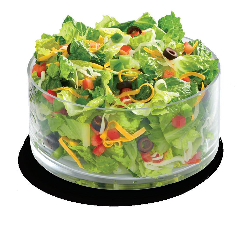 Romaine, Green Peppers, Tomatoes, Black Olives, Mozzarella and Cheddar
