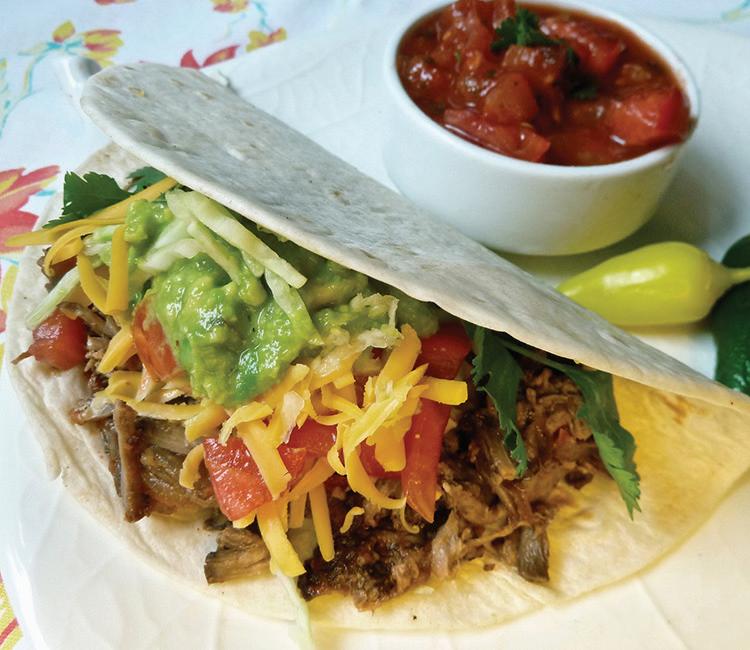 Simply put: “Place pot roast sprinkled with taco seasoning in a slow cooker. Set on high and cook 5-6 hours. Spoon tender, shredded beef into warm soft taco shells and add favorite fillings.” That’s it! No-fail, no-fuss cooking that our busy lifestyles demand whenever we want to gather friends together for a robust and tasty evening meal. Here are the details: SLOW-COOKER BEEF TACOS