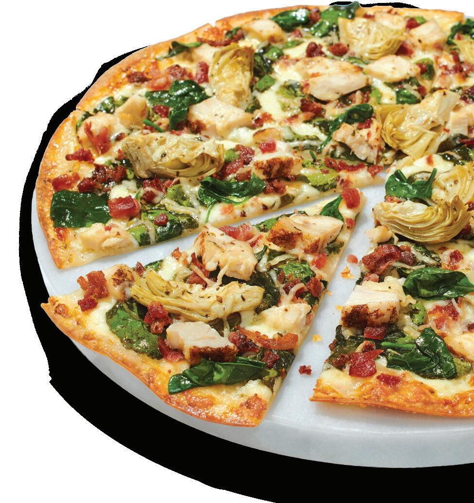 Chicken, Tomatoes, Green Onions, Herb & Cheese Blend, Mozzarella, Creamy Garlic Sauce on Original Crust