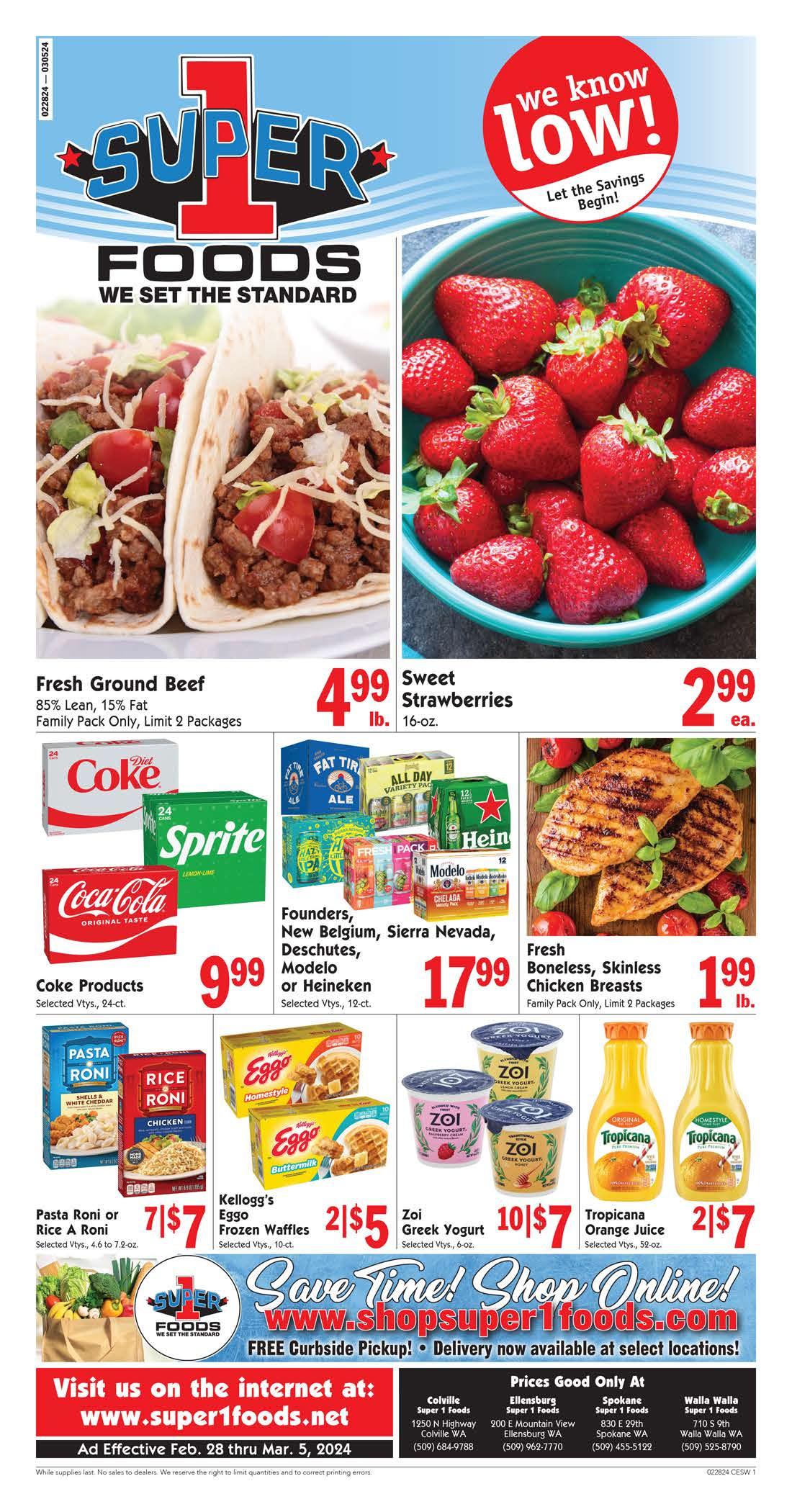 (c) 2024 Donna Erickson Distributed by King Features Synd. Give Comfort Food Classics an Authentic Mexican Twist CRESTLINE AT GARLAND 9 a.m. - 8 p.m. DAILY, CLOSED SUNDAYS WE ACCEPT QUEST, DEBIT & CREDIT CARDS SALE DAYS FEBRUARY 28 THROUGH MARCH 5, 2024 www.bargaingiantfoods.com 489-2148 2103 E. EMPIRE BARGAIN GIANT FOODS 899LB. MAUI FRYER BREASTS 5.99 LB. MAUI RIBS 8.99 LB. “ORIGINAL HAWAIIAN RECIPE” MARINATED SIRLOIN MAUI STEAKS™ USDA CHOICE BEEF RIB STEAK 999LB. BONE-IN PORK STEAK 199LB. LARGE STALK FRESH CELERY 99¢EA. 99¢LB. LARGE ROMA TOMATOES 99¢EA. TEXAS RUBY GRAPEFRUIT 99¢LB. CALIFORNIA NAVEL ORANGES 99¢EA. LARGE GREEN BELL PEPPERS RED OR GREEN LEAF LETTUCE 99¢EA. FRESH ASPARAGUS 199LB. 199LB. BONELESS PORK COUNTRY STYLE RIBS USDA CHOICE BEEF CROSS RIB STEAK 499LB. MAUI MARINATED PORK RIBLETS 199LB. THAT’S SMART BATH TISSUE 12 DOUBLE ROLLS 499EA. JIFFY HONEY CORN MUFFINS 79¢EA. 8.5 OZ. BOX FOOD CLUB SHREDDED CHEESES 179EA. 8 OZ. PKG. MARUCHAN CUP SOUP 599EA. 12 COUNT CASE WASHINGTON GROWN HONEY CRISP APPLES 69¢LB. WASHINGTON GROWN COSMIC CRISP APPLES 99¢LB. BREAKFAST & SWEET ITALIAN OUR FRESH PORK SAUSAGE 299LB. SLICED TO ORDER DELI SLICED OVEN ROAST TURKEY 299LB. ORIGINAL ROAST YUBAN COFFEE 31 OZ. CAN 799EA. JOHN MORRELL HOT DOGS 12 OZ. PKG. 99¢EA. ECKRICH LIL SMOKIES 14 OZ. PKG. 99¢EA. FESTIVAL PETITE DILLS 32 OZ. JAR 299EA.