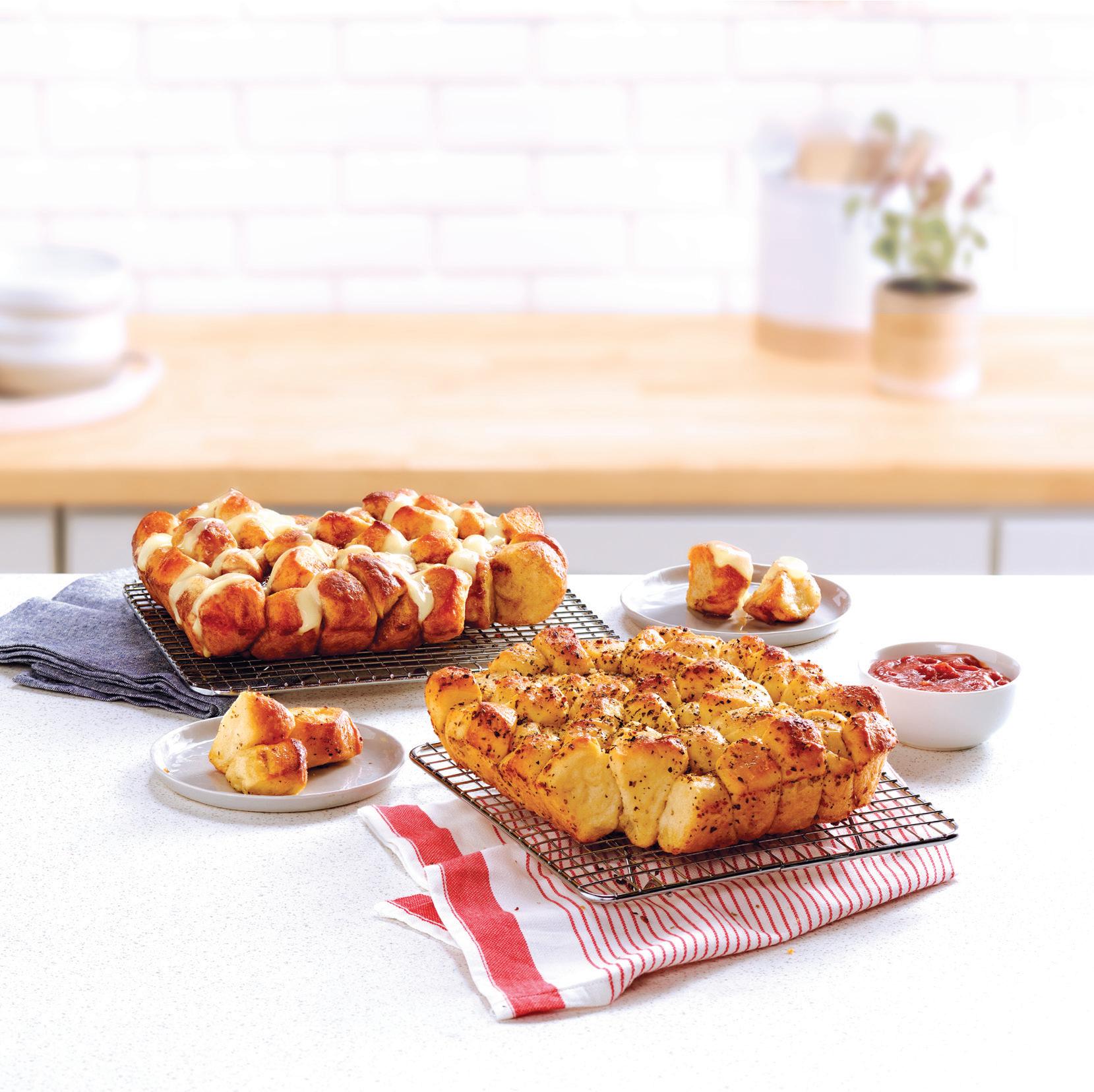 Fresh dough pieces tossed in Herb Garlic Spread, topped with Zesty Herbs and served as pull apart bread with a side of Marinara