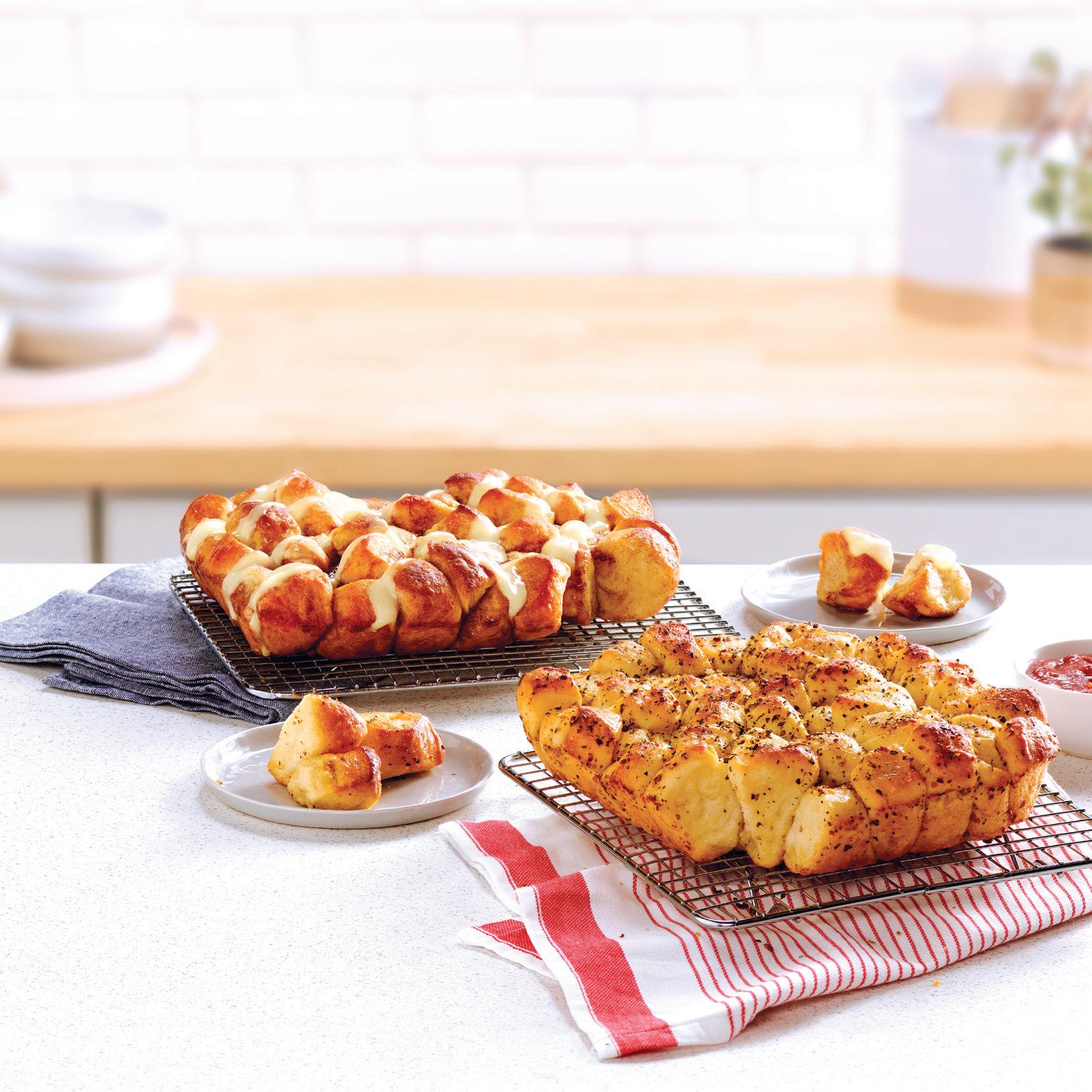 Fresh dough pieces tossed in Herb Garlic Spread, topped with Zesty Herbs and served as pull apart bread with a side of Marinara