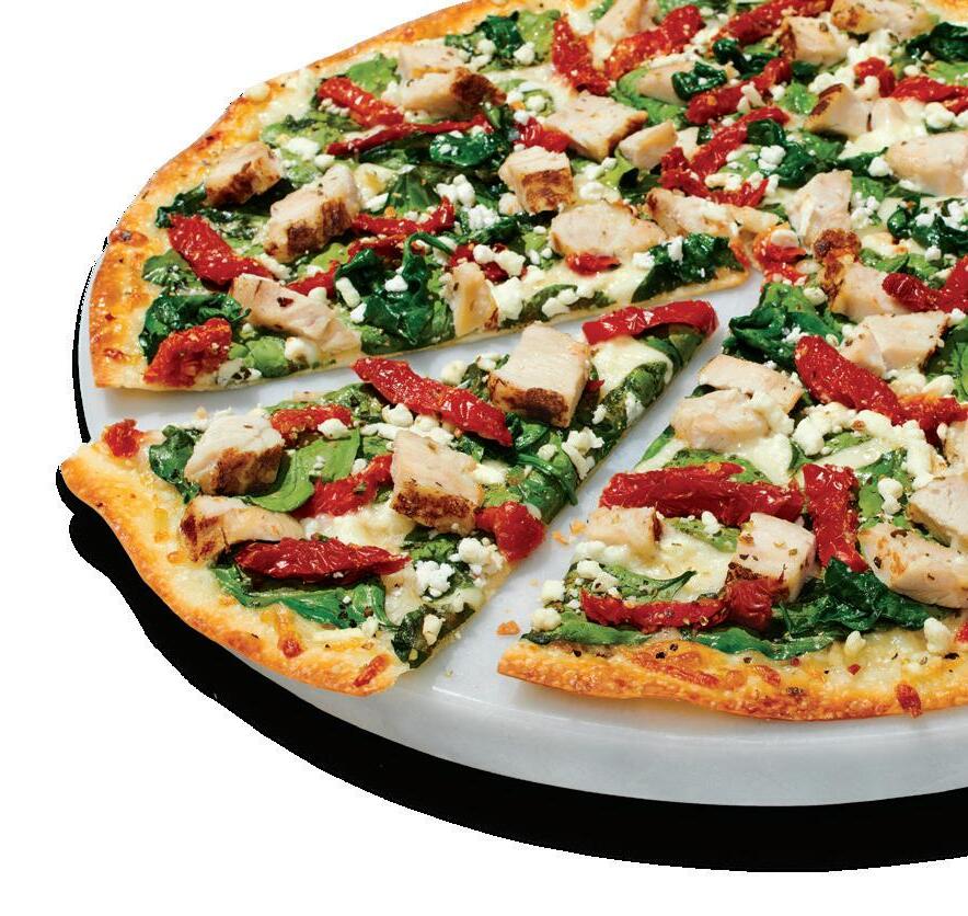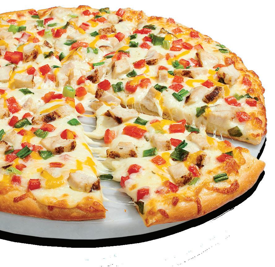 Chicken, Tomatoes, Green Onions, Herb & Cheese Blend, Mozzarella, Creamy Garlic Sauce on Original Crust