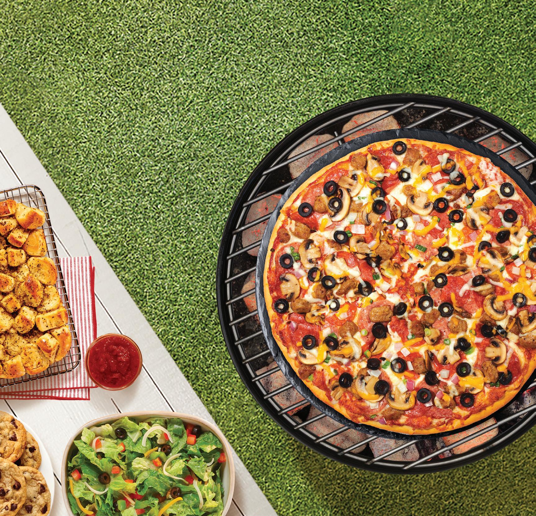 ecipe or up to 5 toppings on Thin or Original crust and choose from Cheesy Bread, Garlic Monkey Bread, Cinnamon Monkey Bread or Salads