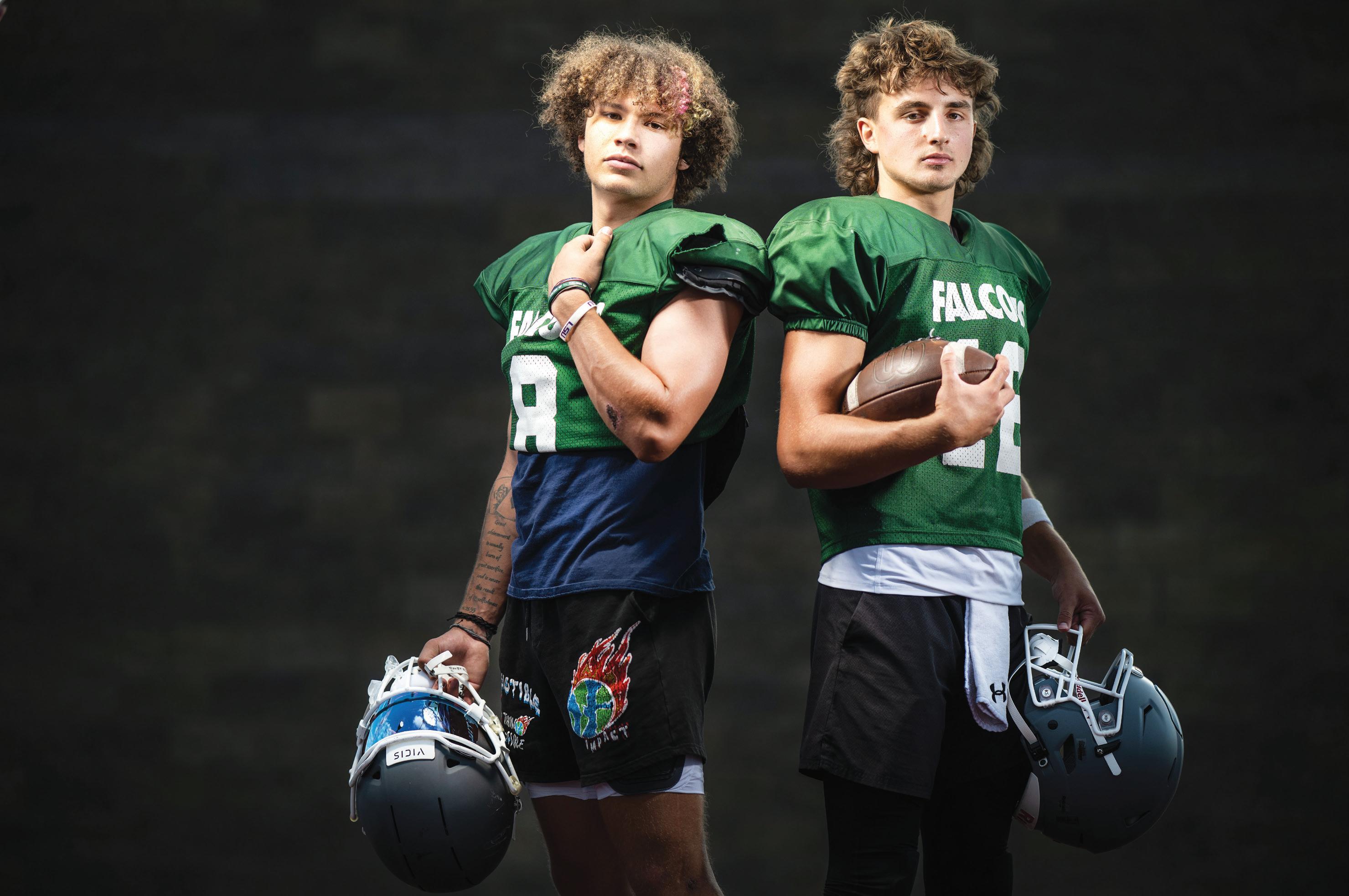Ridgeline wide receiver Brayden Allen, left, and quarterback Landon Garner helped guide the Falcons to an 8-3 record and playoff appearance last season.