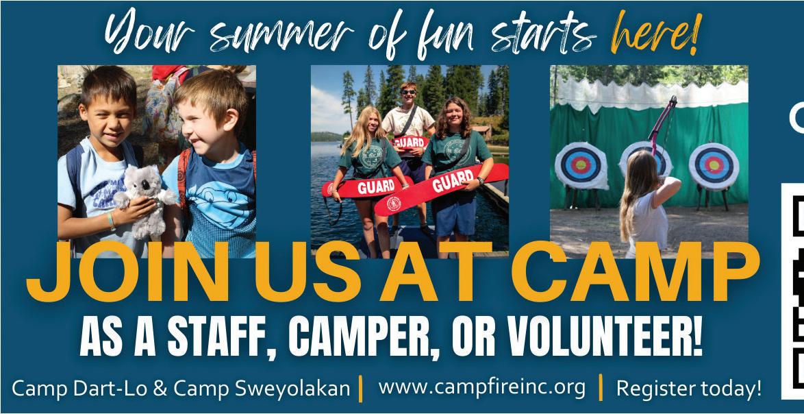 23, $560 Sunday-Friday. Camp Sweyolakan is accessible only by boat. Participants will be loading the Big Boat from downtown Coeur d’Alene. campfire@ campfireinc.org, campfireinc.org, (509) 747-6191
