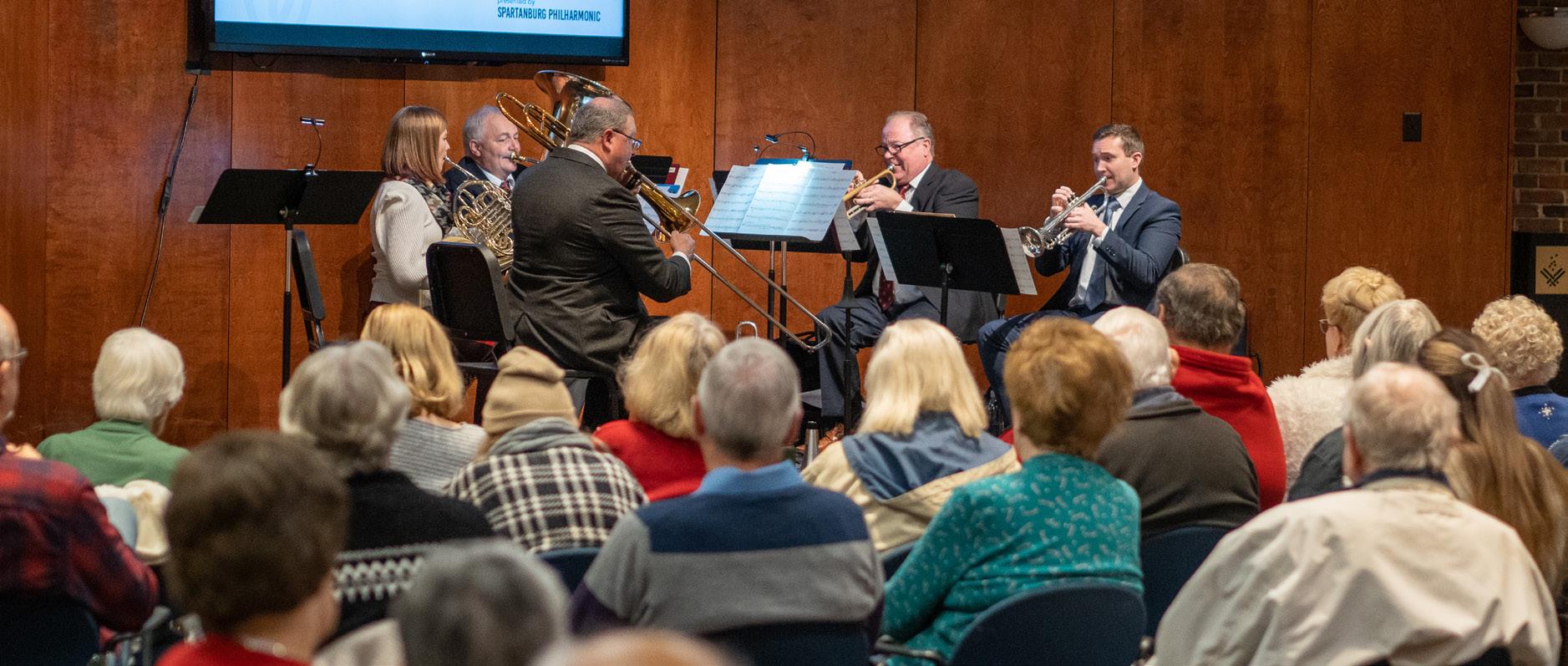 The "Music Sandwiched In" program features 22 free concerts each year held in the Barrett Room of the Spartanburg County Downtown Library. This 25+ year partnership enriches the lives of the intergenerational population of attendees. Over its span, thousands of individuals have enjoyed many genres of music including jazz, bluegrass, classical, and rock. During "Music Sandwiched In" the doors of the Barrett Room are left open, and the 105,000 square foot library is filled with music, laughter, and applause. Attendees are encouraged to bring their own lunch to enjoy the concert or to purchase a lunch on site. All are welcome!