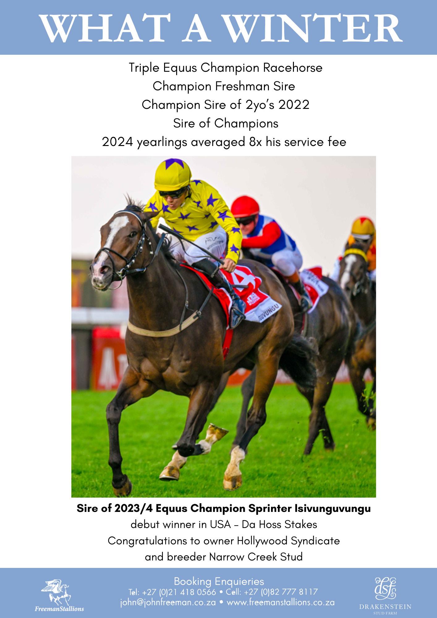 The R450 000 Betway Gr2 Joburg Spring F&M Challenge was won last year by Stuart Pettigrew’s Feather Boa who made such an eyecatching USA debut recently.