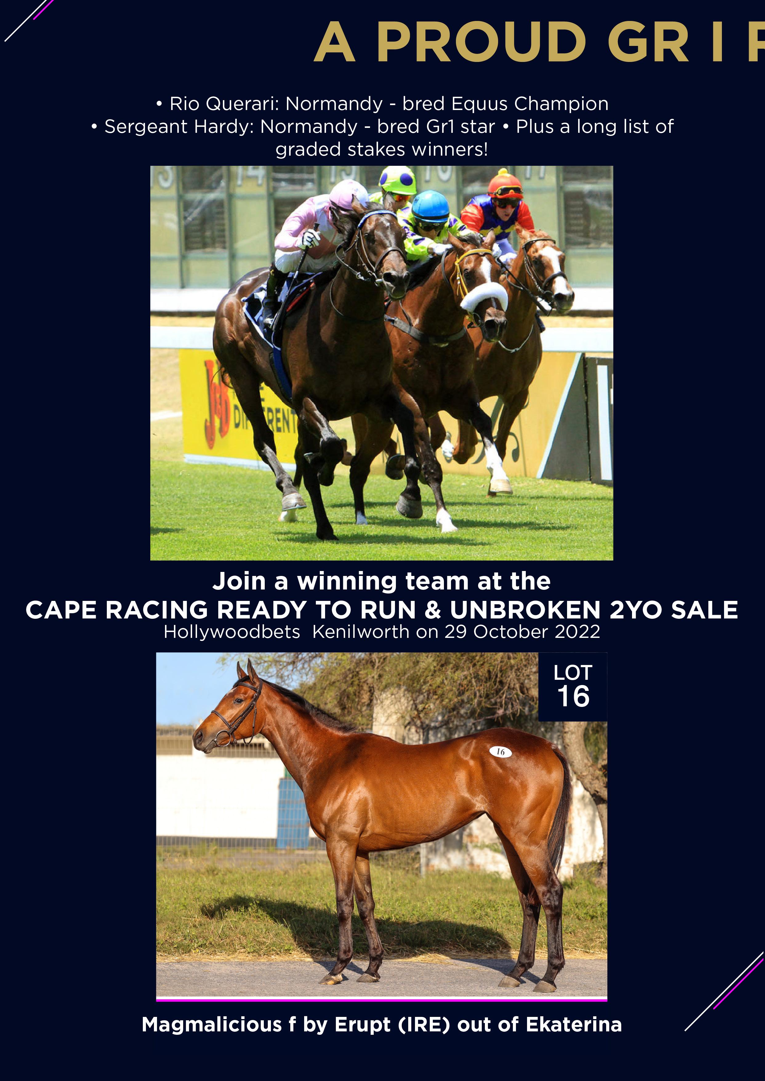4Racing will also be adding a further 12 MR 66 races to the program through the period at a gross stake of R75 000 for each to accommodate the lower rated horses.