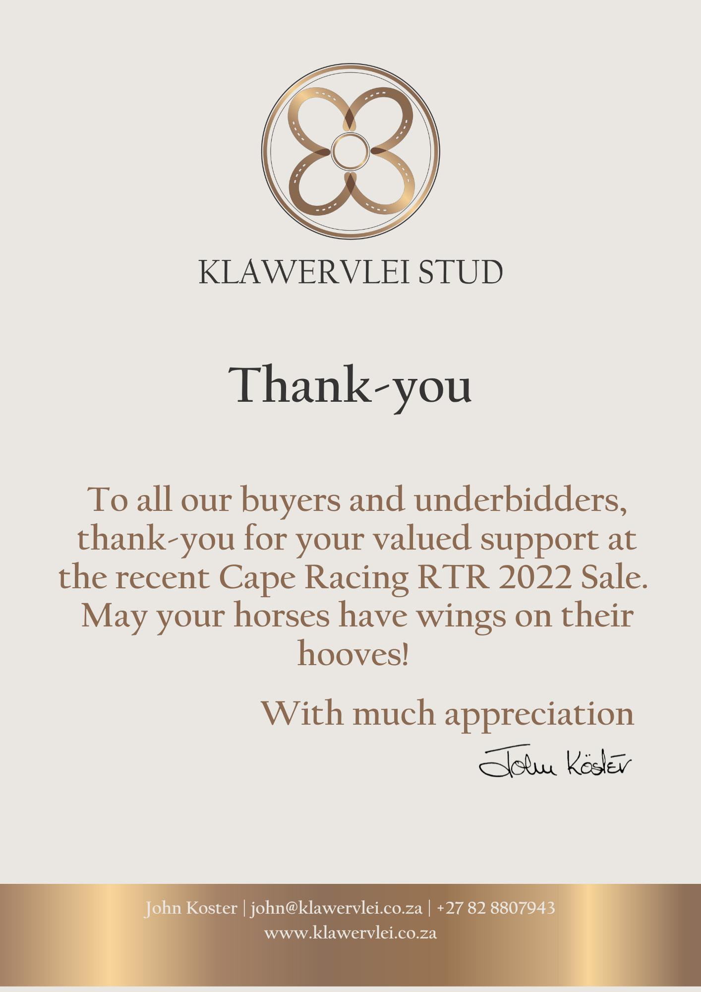 In closing, Tristan asked that we mention his ‘Durban parents’, Summerveld owner-breeders, Marius and Gill Mostert.