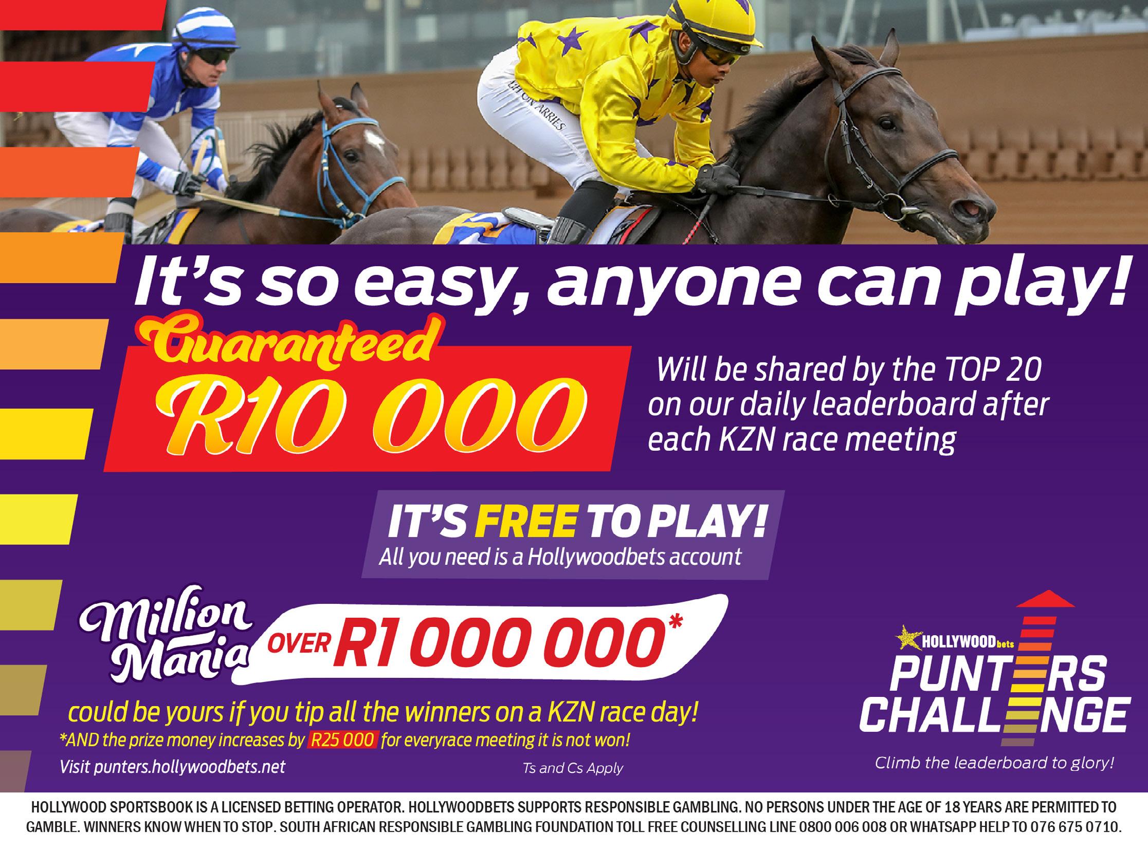 The Pick 6 commences in the fourth race at 13h20. A R1 million carryover means