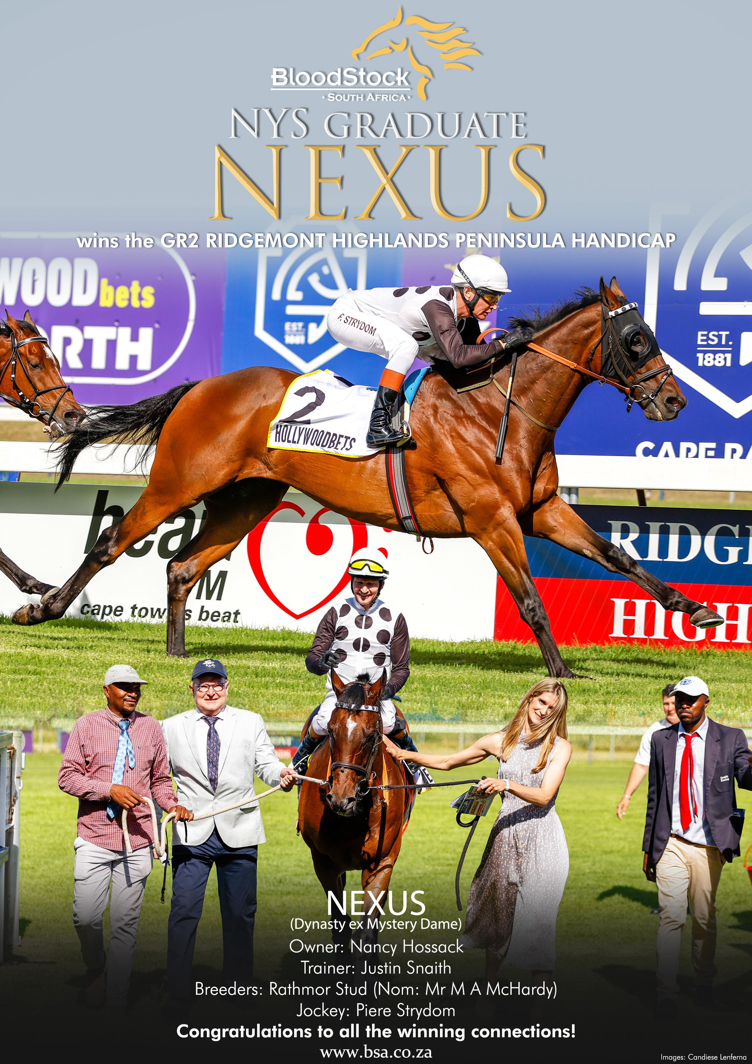 a Drakenstein home-bred son of past SA Champion sire Trippi (End Sweep) out of the five-times stakes winner Demanding Lady (Dynasty), who scored up to 2200m. He took his stakes earnings to R1 625 930.