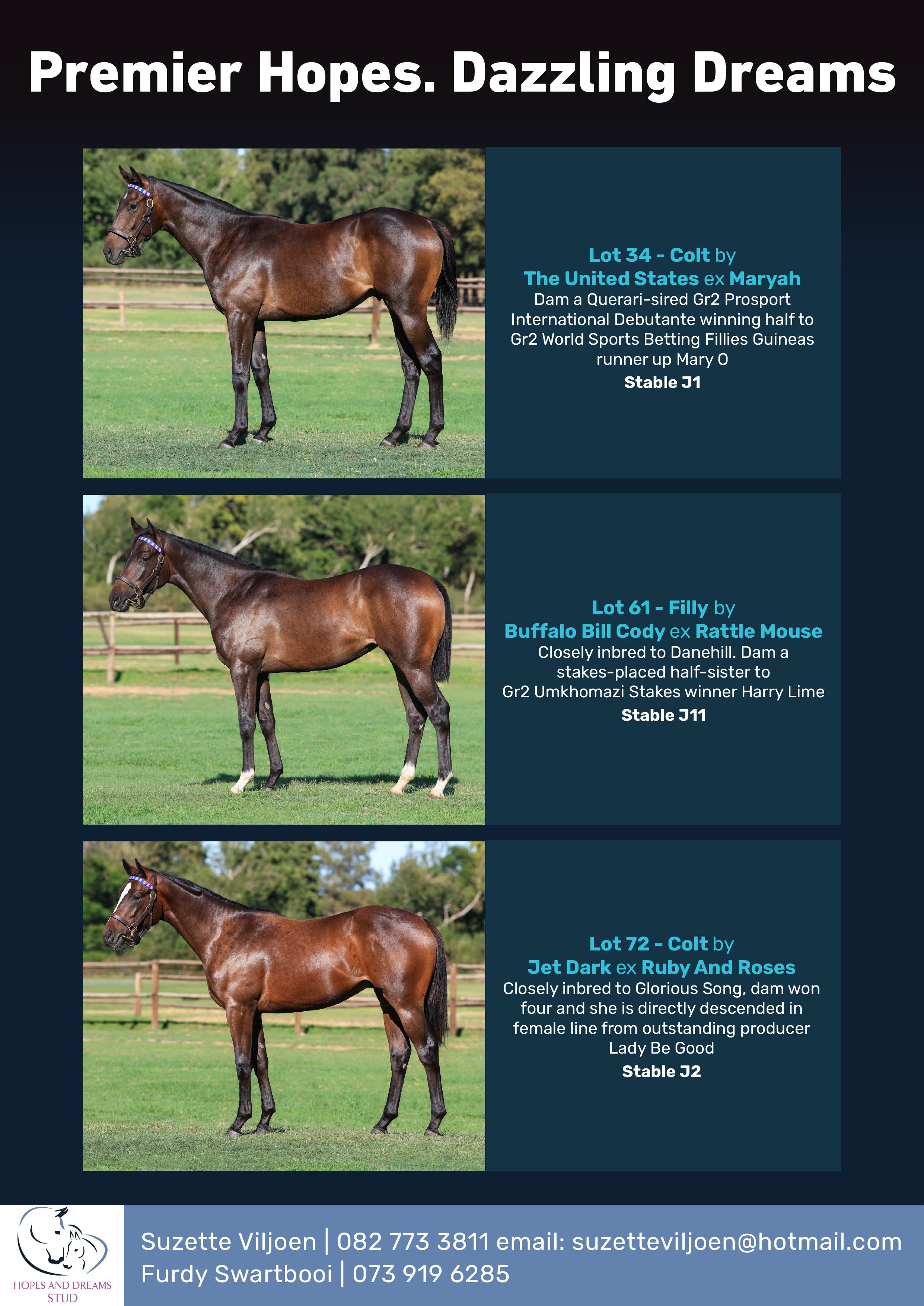 For more information on these three yearlings, please contact James on (072) 680 3549.