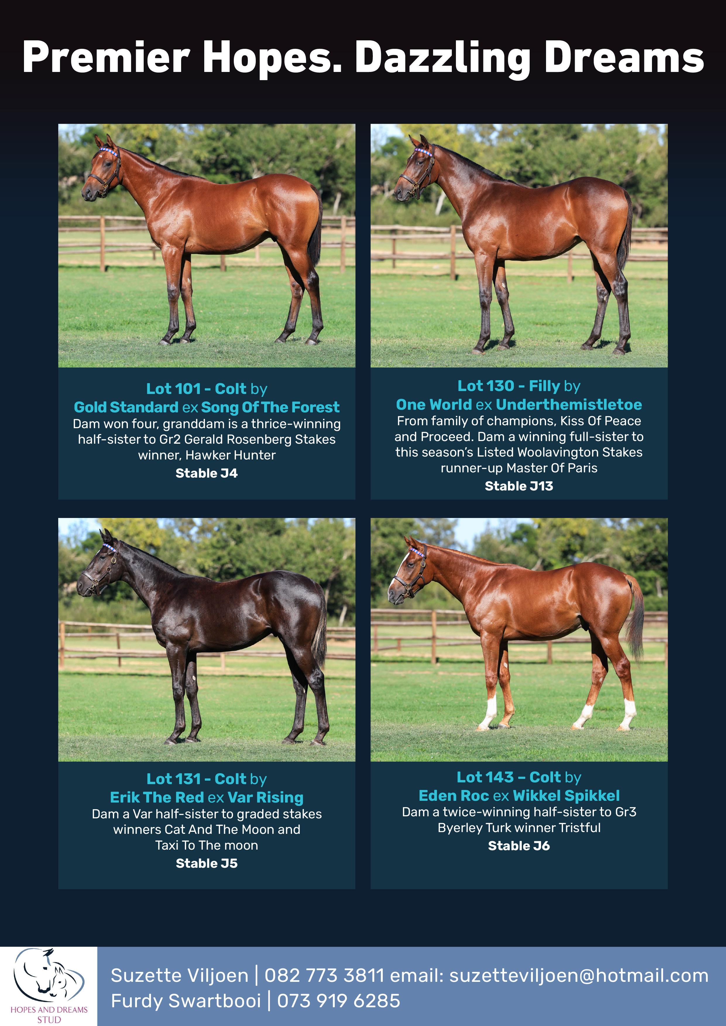 The KZN outfit will be offering a six strong draft at the 2026 Premier Yearling Sale, with Blue Sky set to bring forward yearlings sired by all of Eden Roc, Erupt, Fire Away, One World and Twice Over.