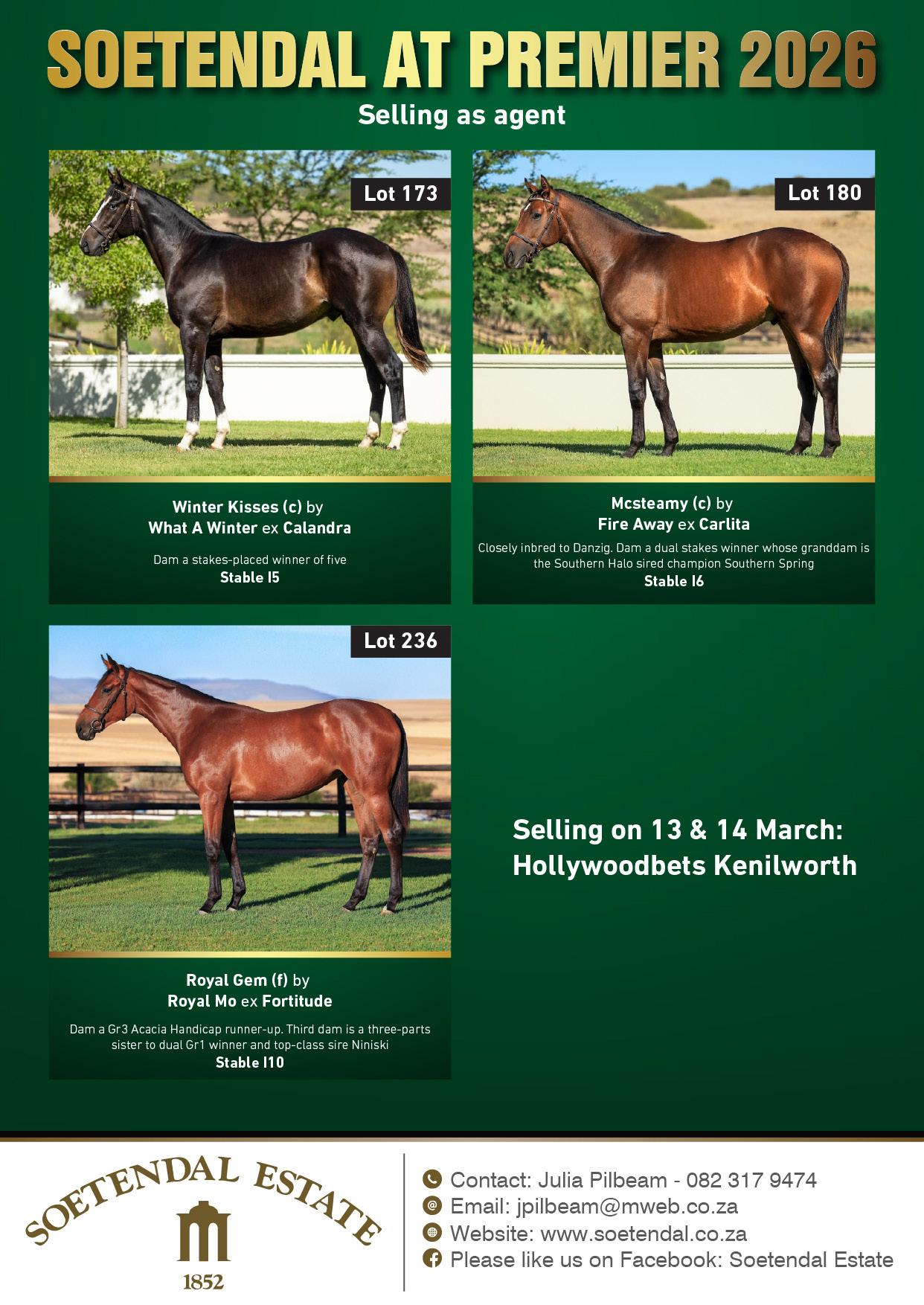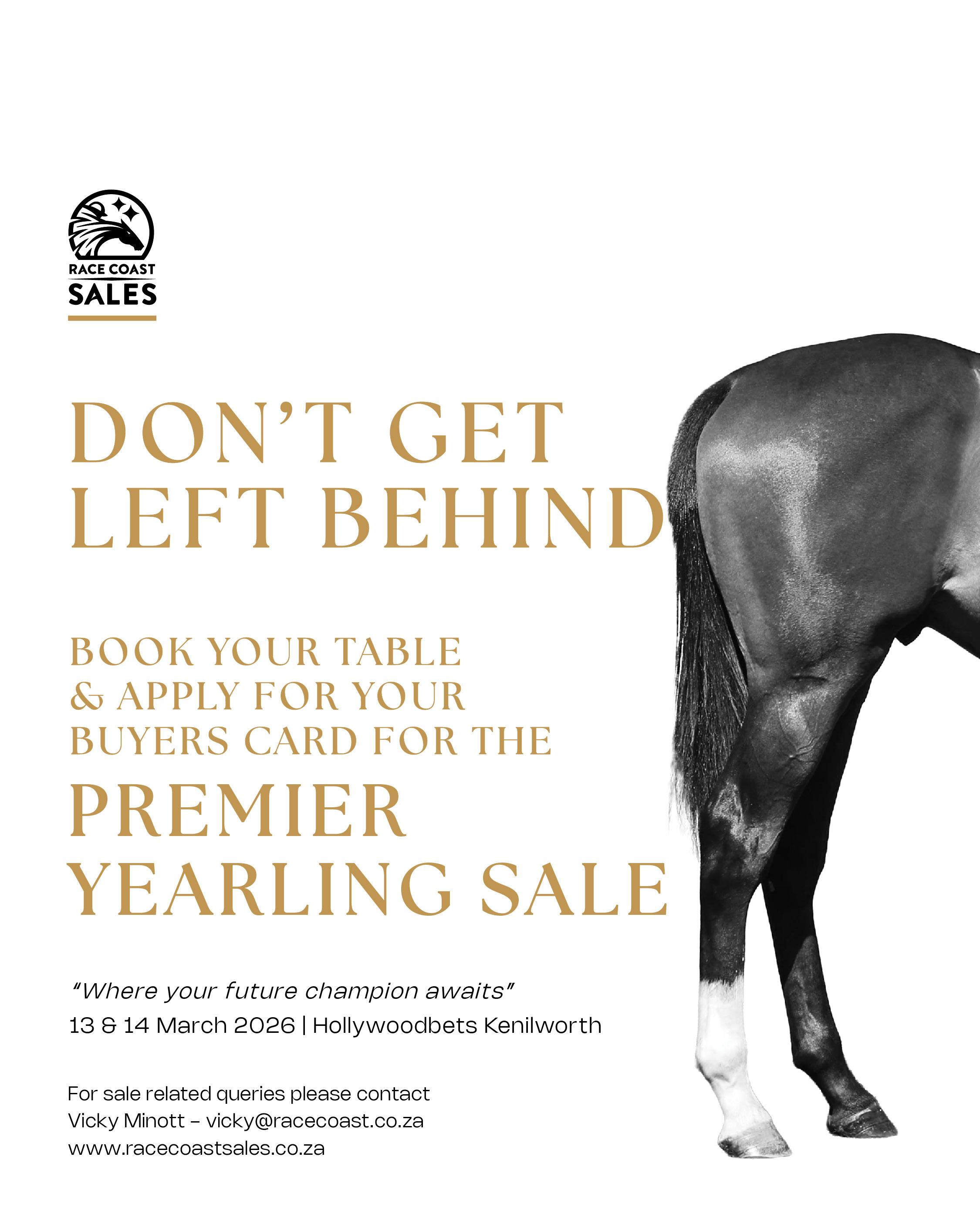 For any enquiries about the two-day sale, interested parties are asked to contact Vicky Minott at vicky@racecoast.co.za or Pippa Mickleburgh pippa@racecoast.co.za