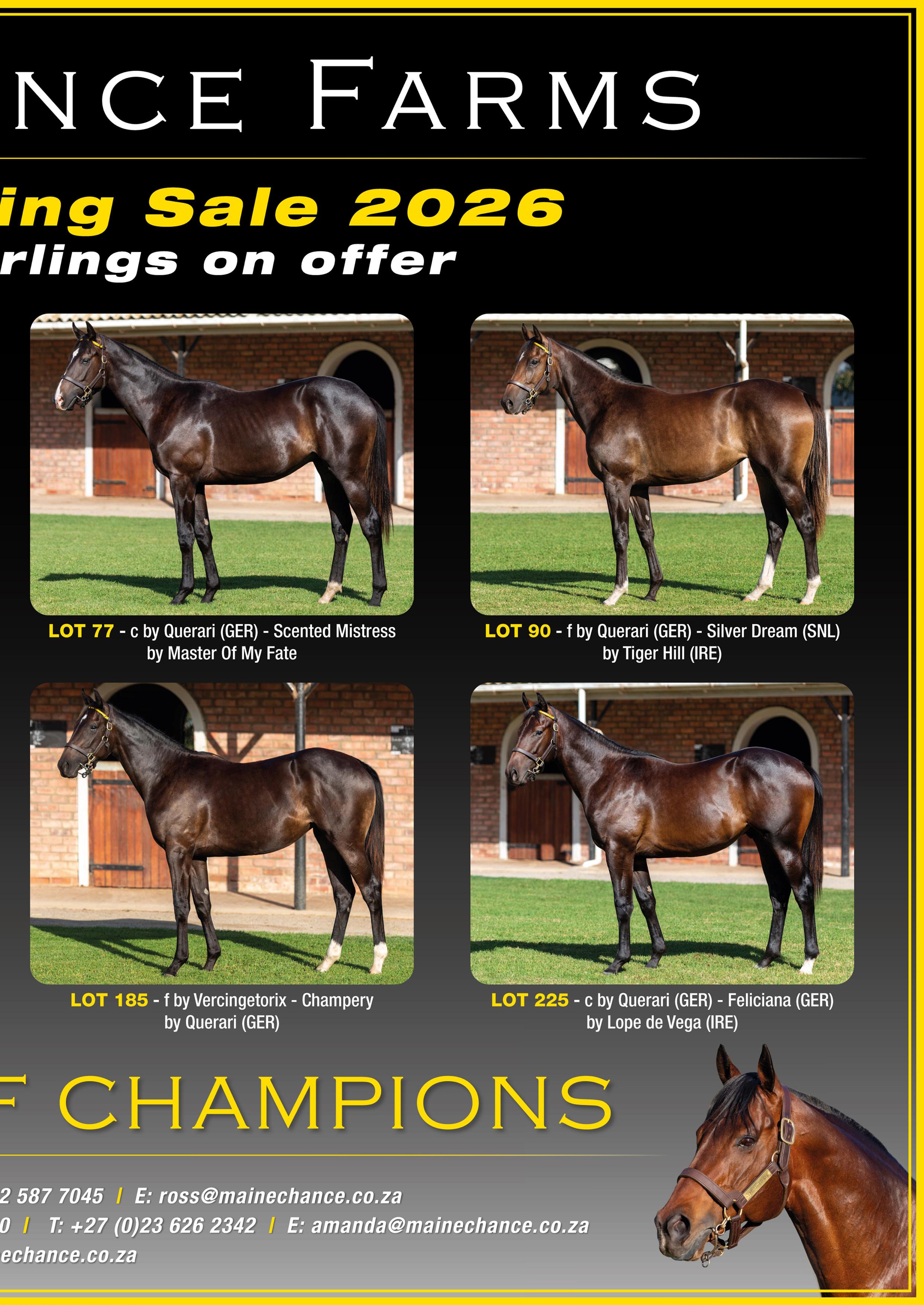 The 2026 Race Coast Premier Yearling Sale has attracted support from some of South Africa’s top breeders, with leading stallions Gimmethegreenlight, Master Of My Fate, One World, Querari, Rafeef, What A Winter and reigning champion, Vercingetorix, all well represented in the catalogue.