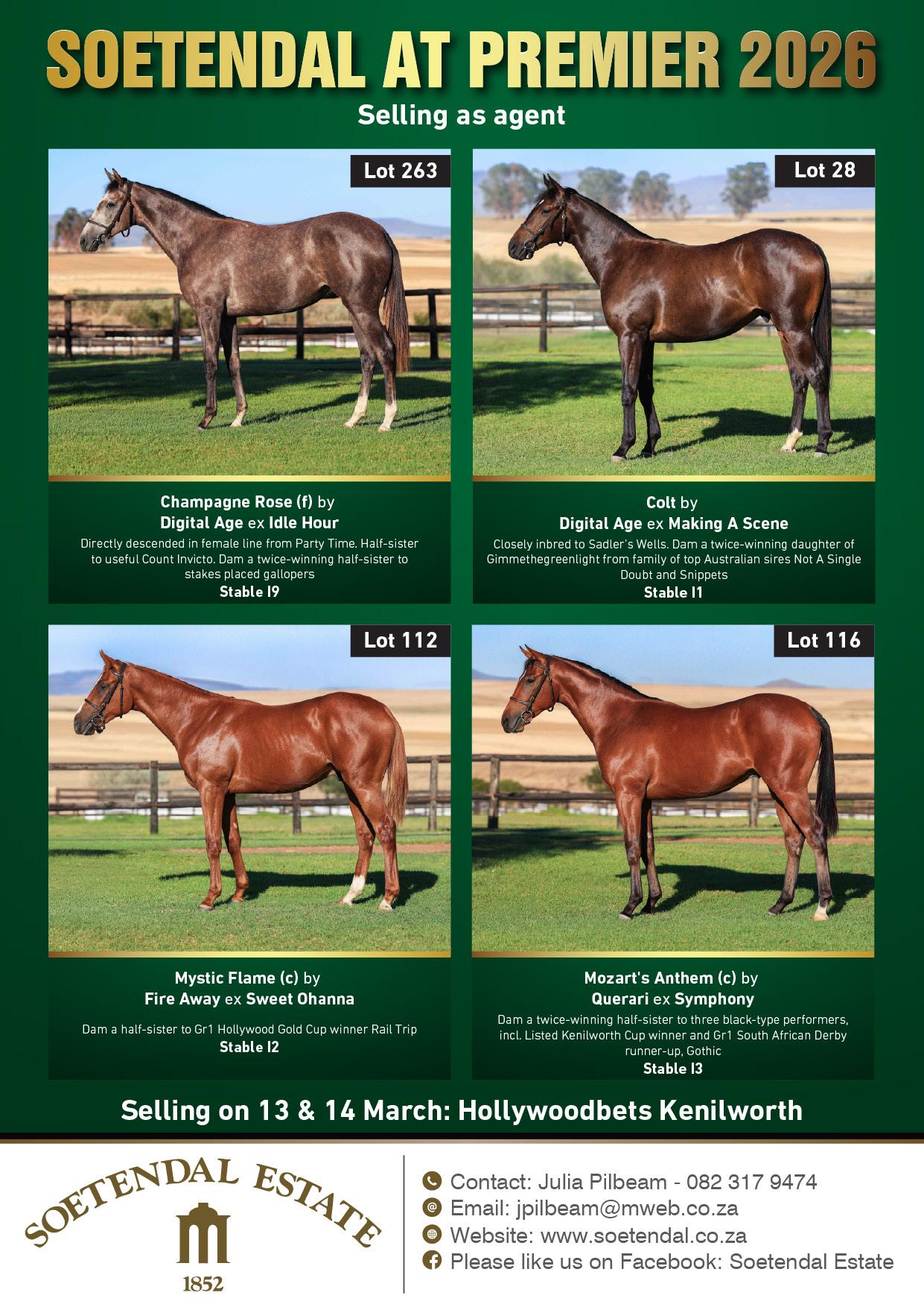 This year’s Premier Yearling Sale is set to take place at Hollywoodbets Kenilworth on Friday 13 March and Saturday 14 March.
