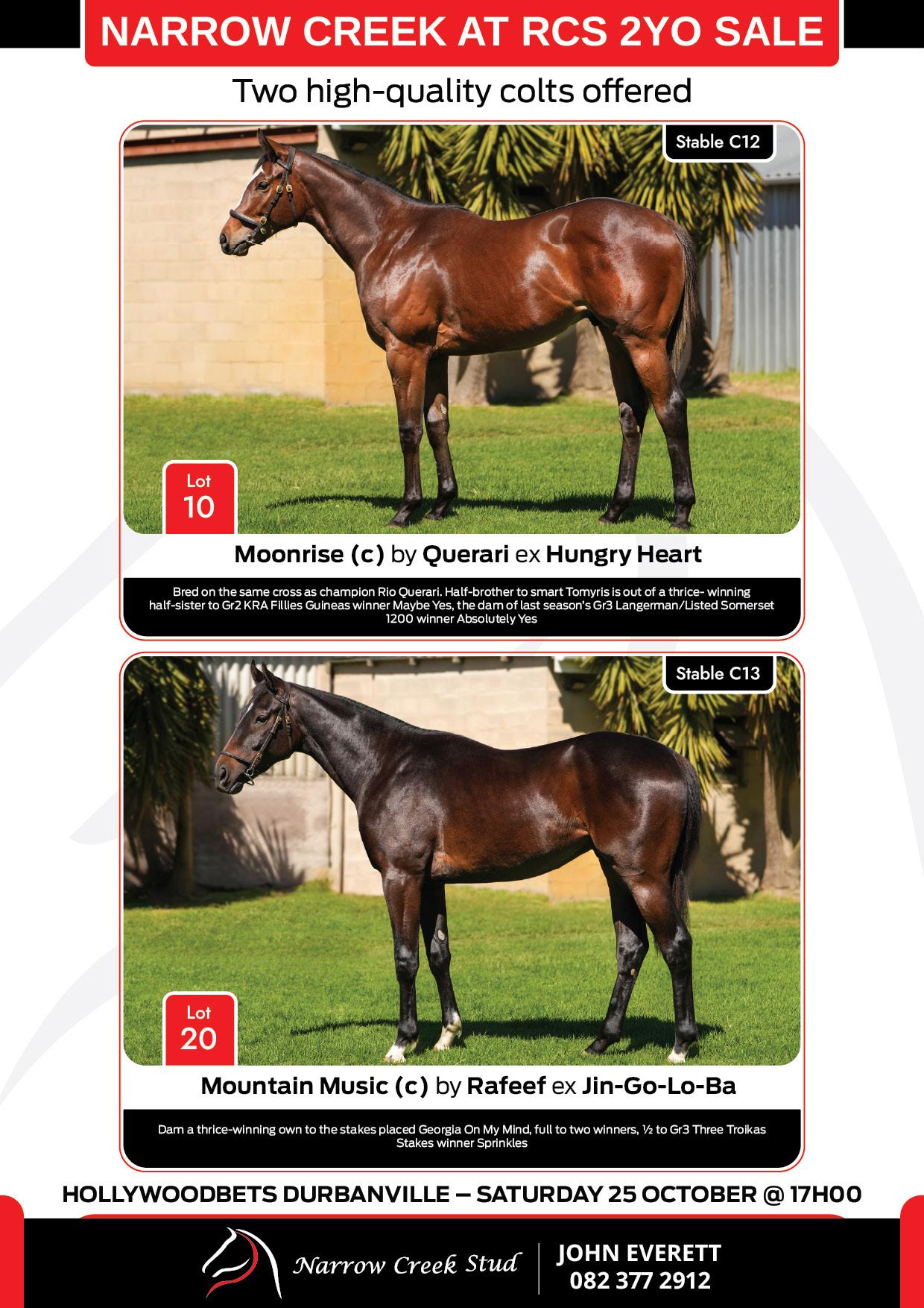 Their consignment includes progeny of South Africa’s reigning champion sire Vercingetorix, as well as two-year-olds sired by the likes of Gimmethegreenlight, Malmoos, and Querari.