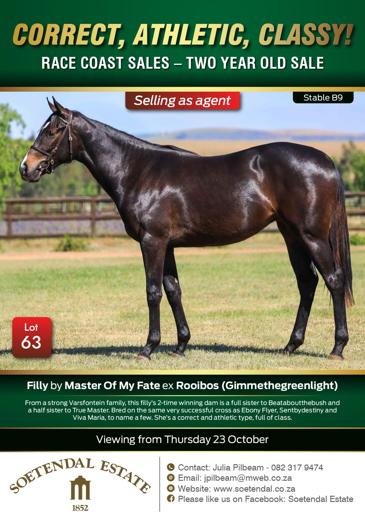 A son of one of South Africa’s most exciting young sires, who is also closely related to the sensational Master Of My Fate. Closely