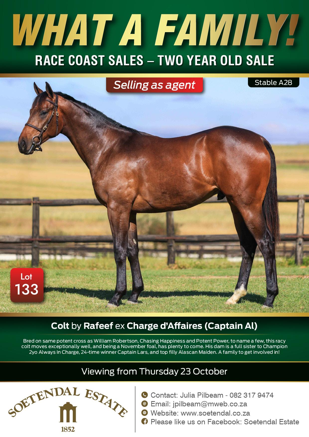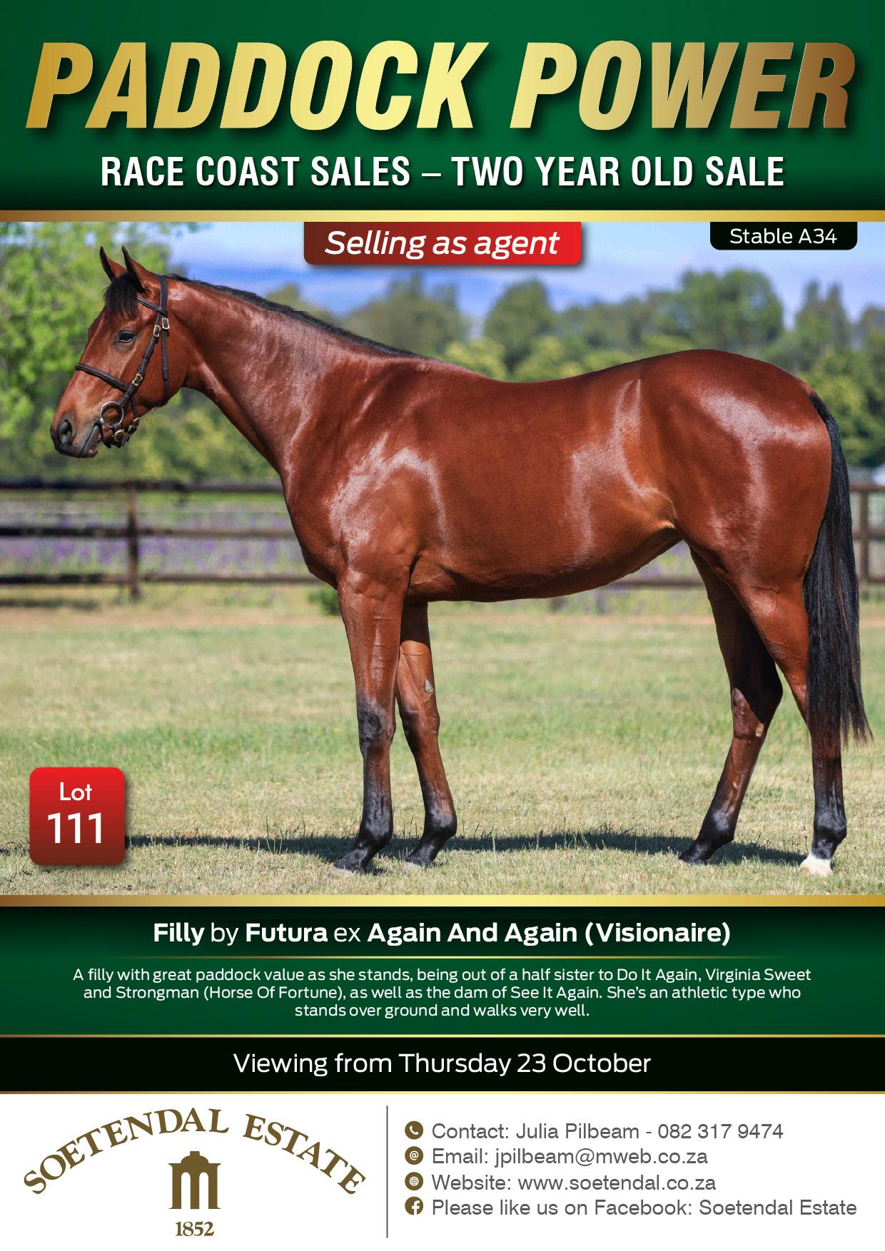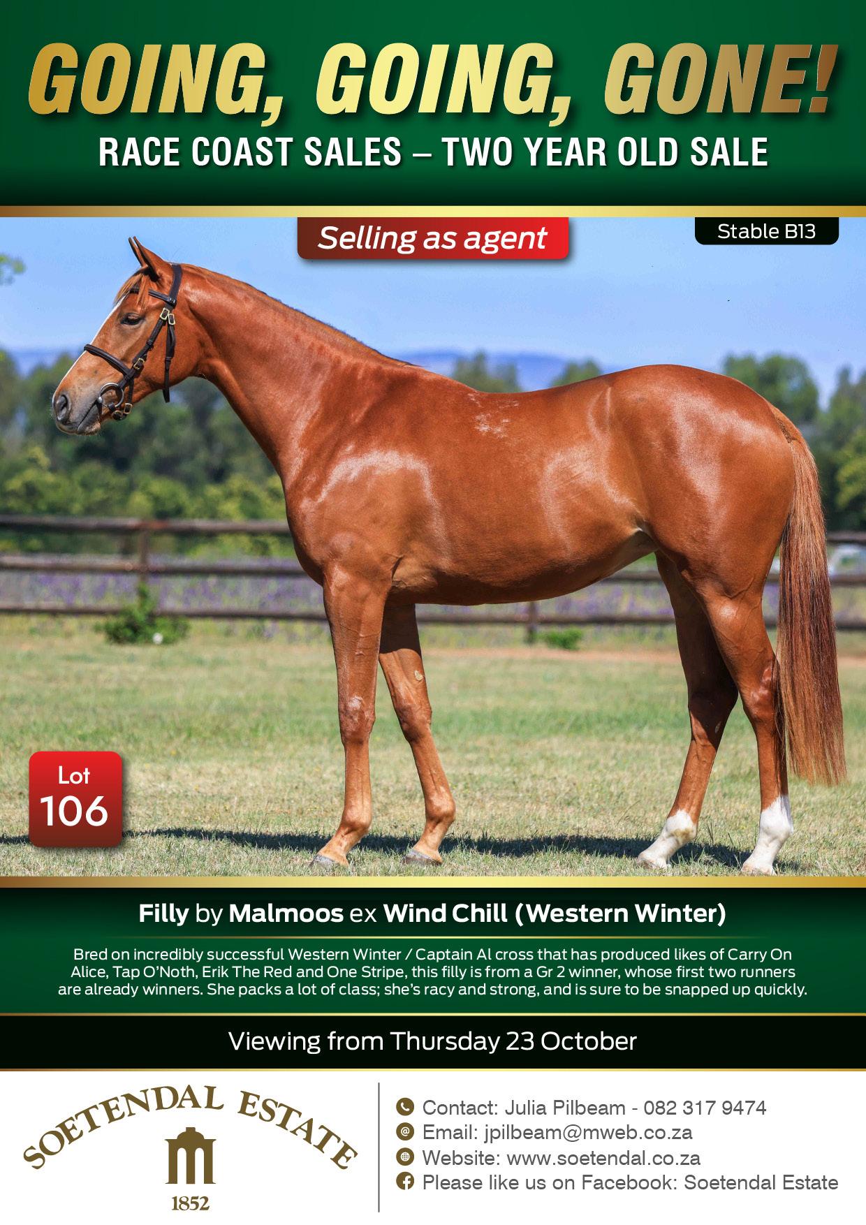 A few potential standout lots at the 25 October auction at Hollywoodbets Durbanville, includes: