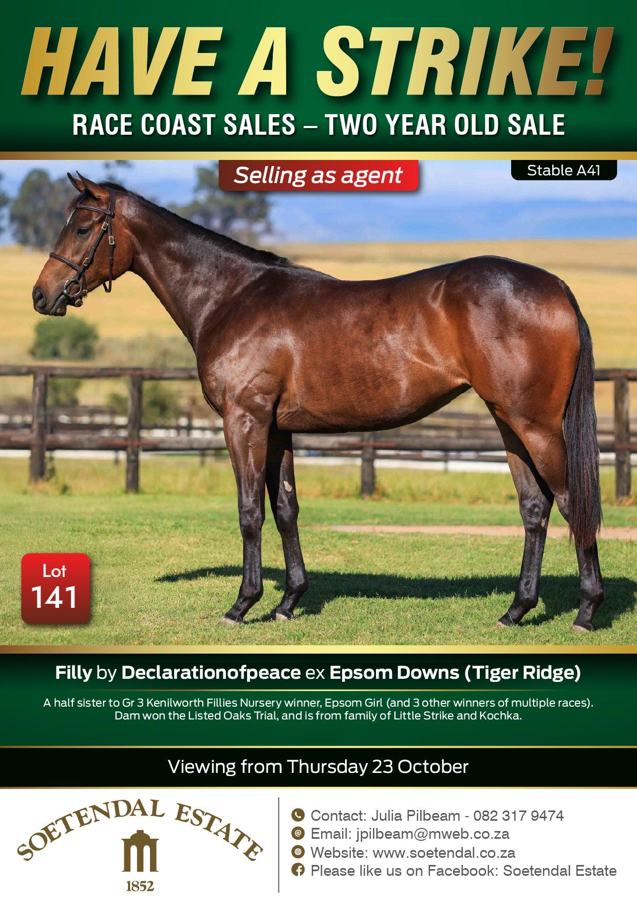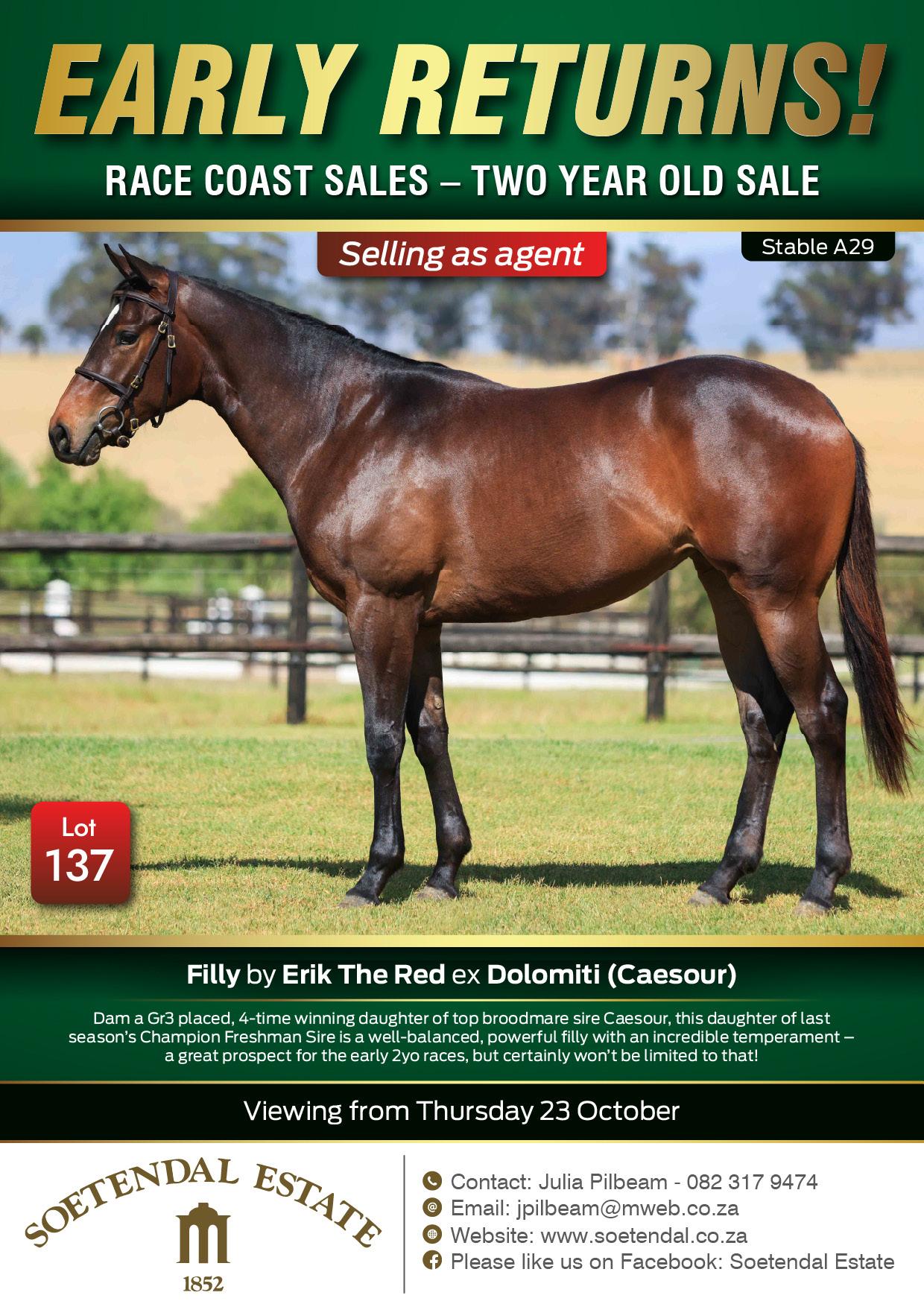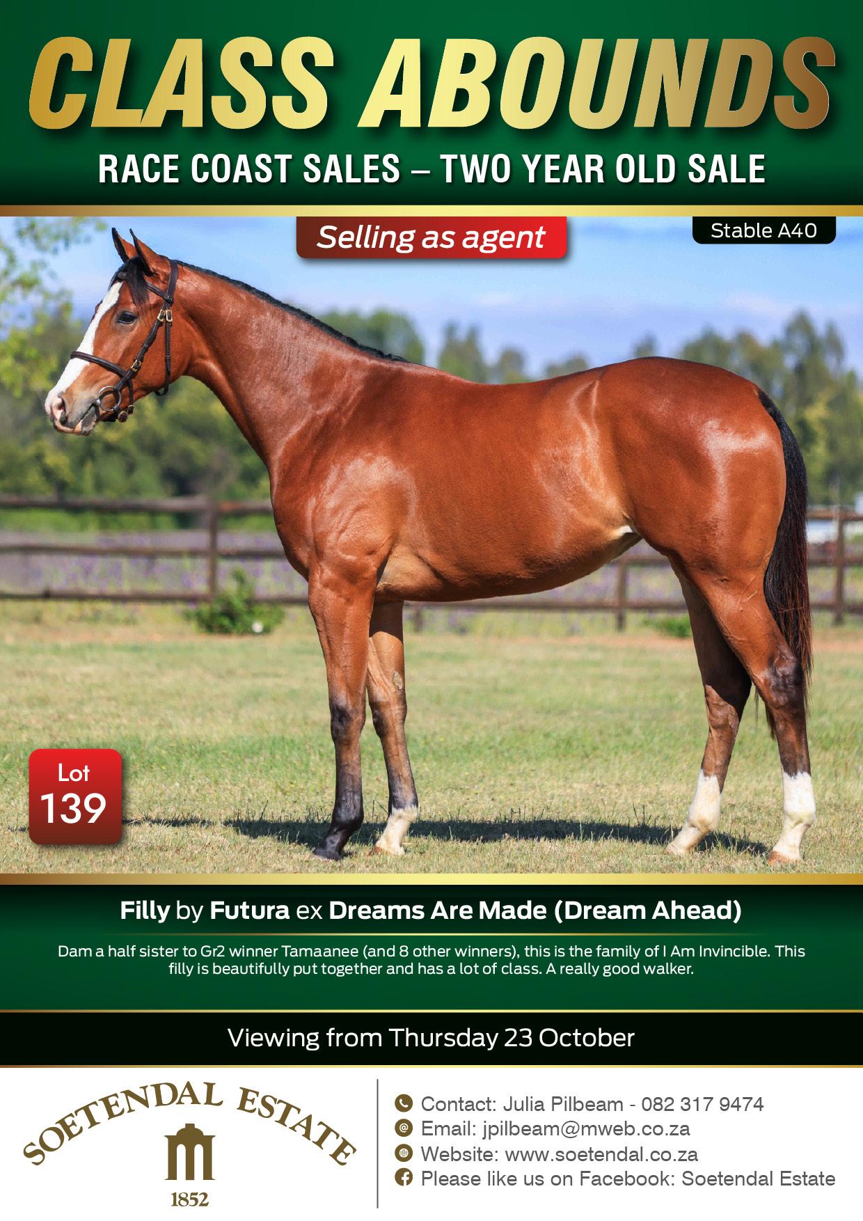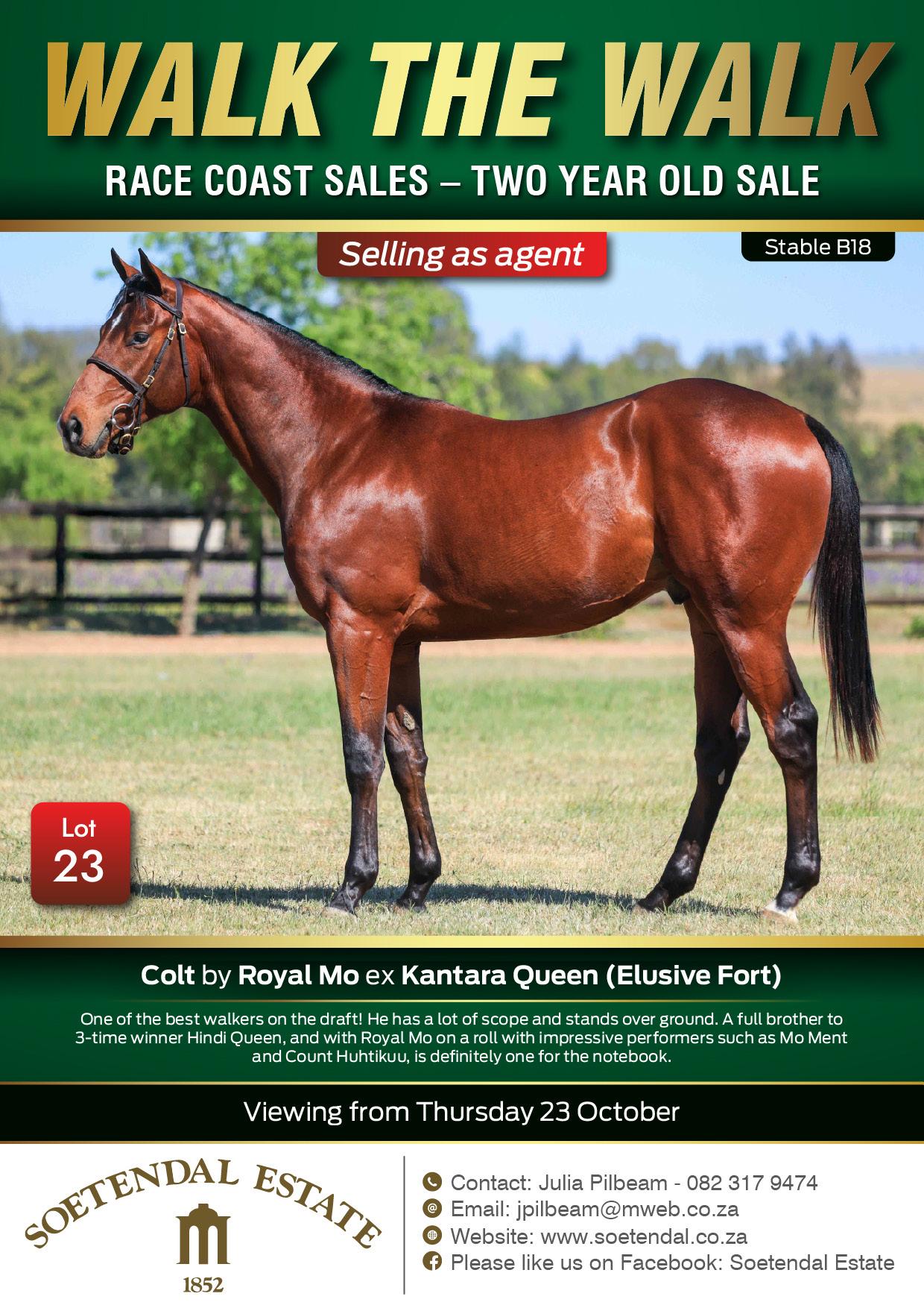 A few potential standout lots at the 25 October auction at Hollywoodbets Durbanville, includes: