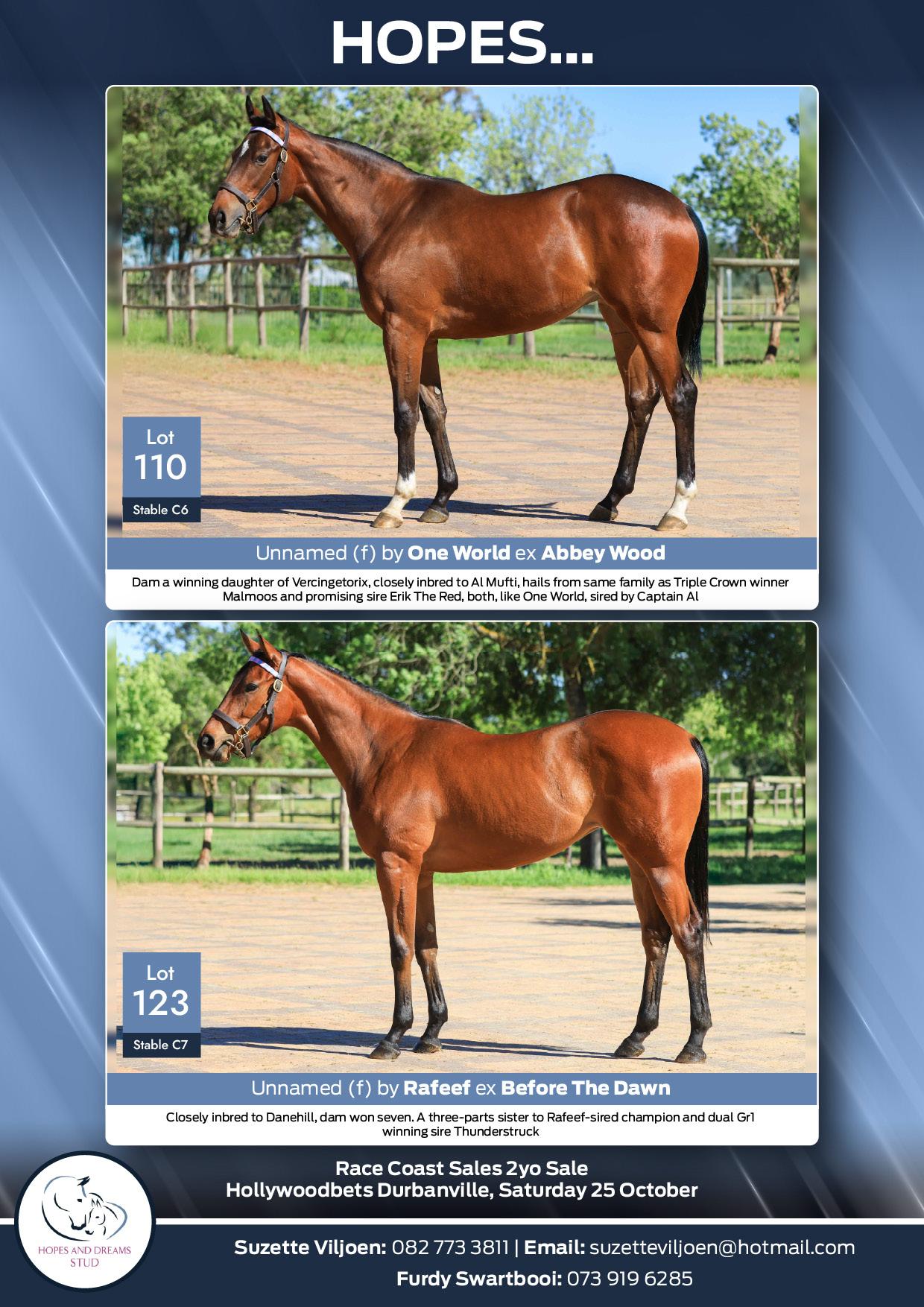 Paardeberg Stud’s Two-Year-Old Sale trio consist of two colts, sired by Querari and What A Winter respectively, as well as a filly by the sensational One World.