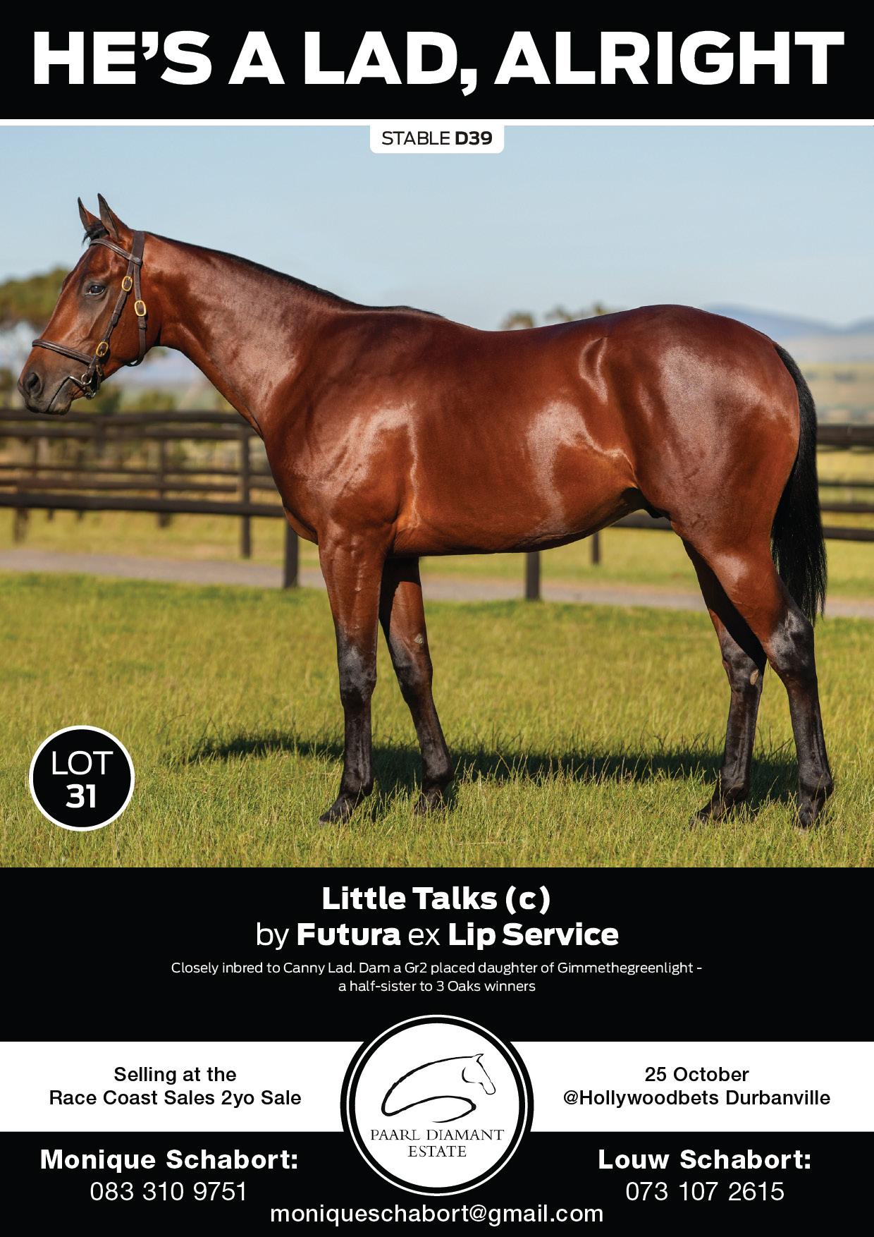 Ambiance will be offering an eight strong draft at the upcoming Two-YearOld Sale at Hollywoodbets Durbanville, and Marianne picked out the following lots of particular interest: