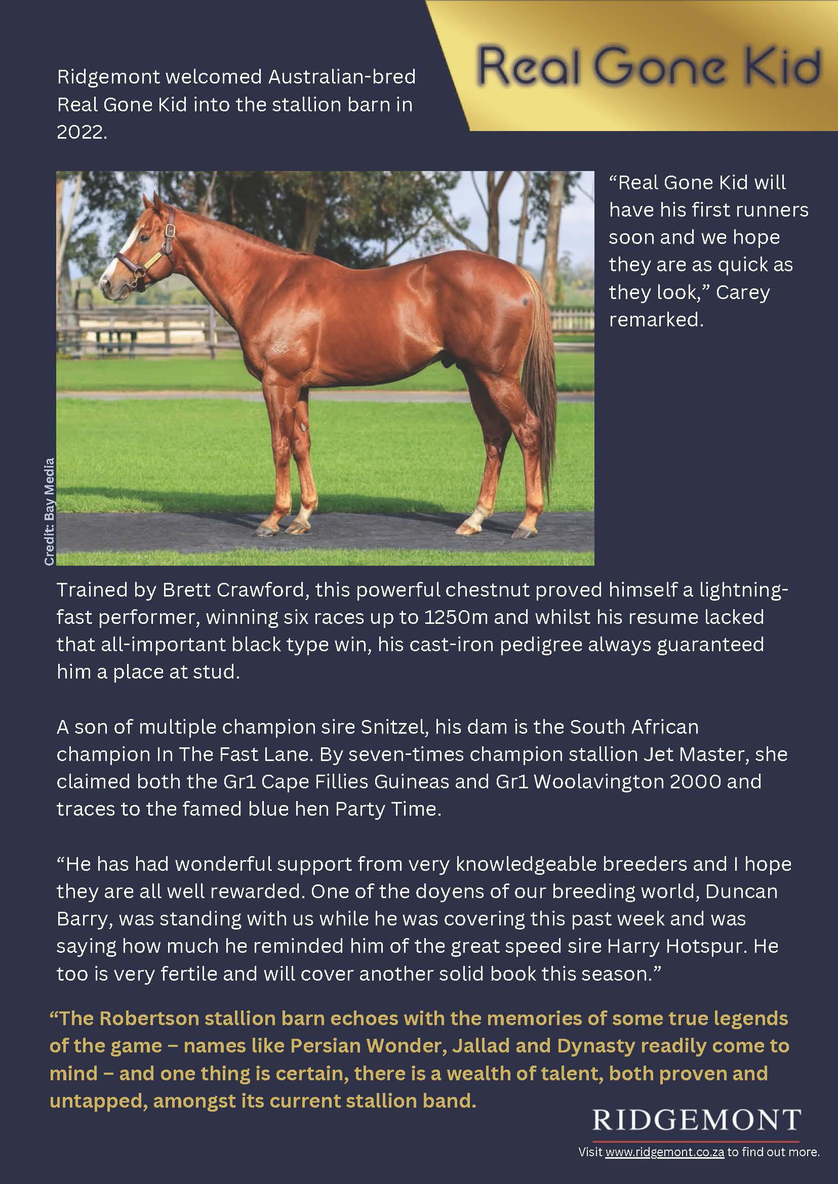 Following a fine career capped by victory in the Gr1 Golden Rose Stakes, he retired to Newgate Stud Farm in 2023 where he proved immensely popular. He will be represented by no less than 20 of his first crop yearlings.