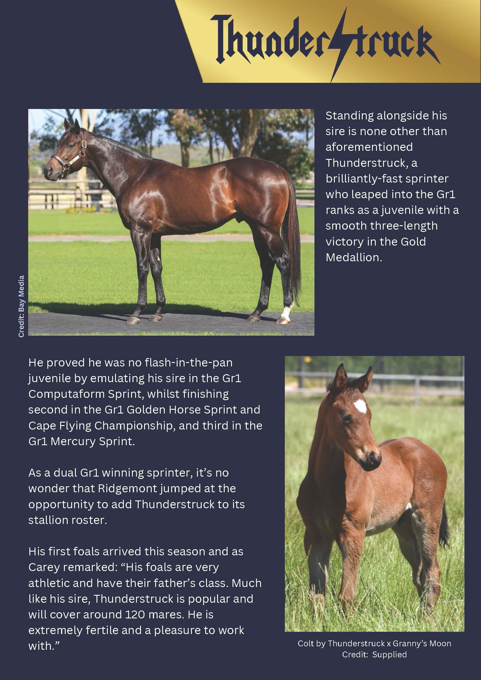Also set to come under the auctioneer’s hammer is a brown filly out of the Captain Al mare Missisippi Burning, a dual classic winner of the Gr1 Cape Fillies Guineas and the Gr2