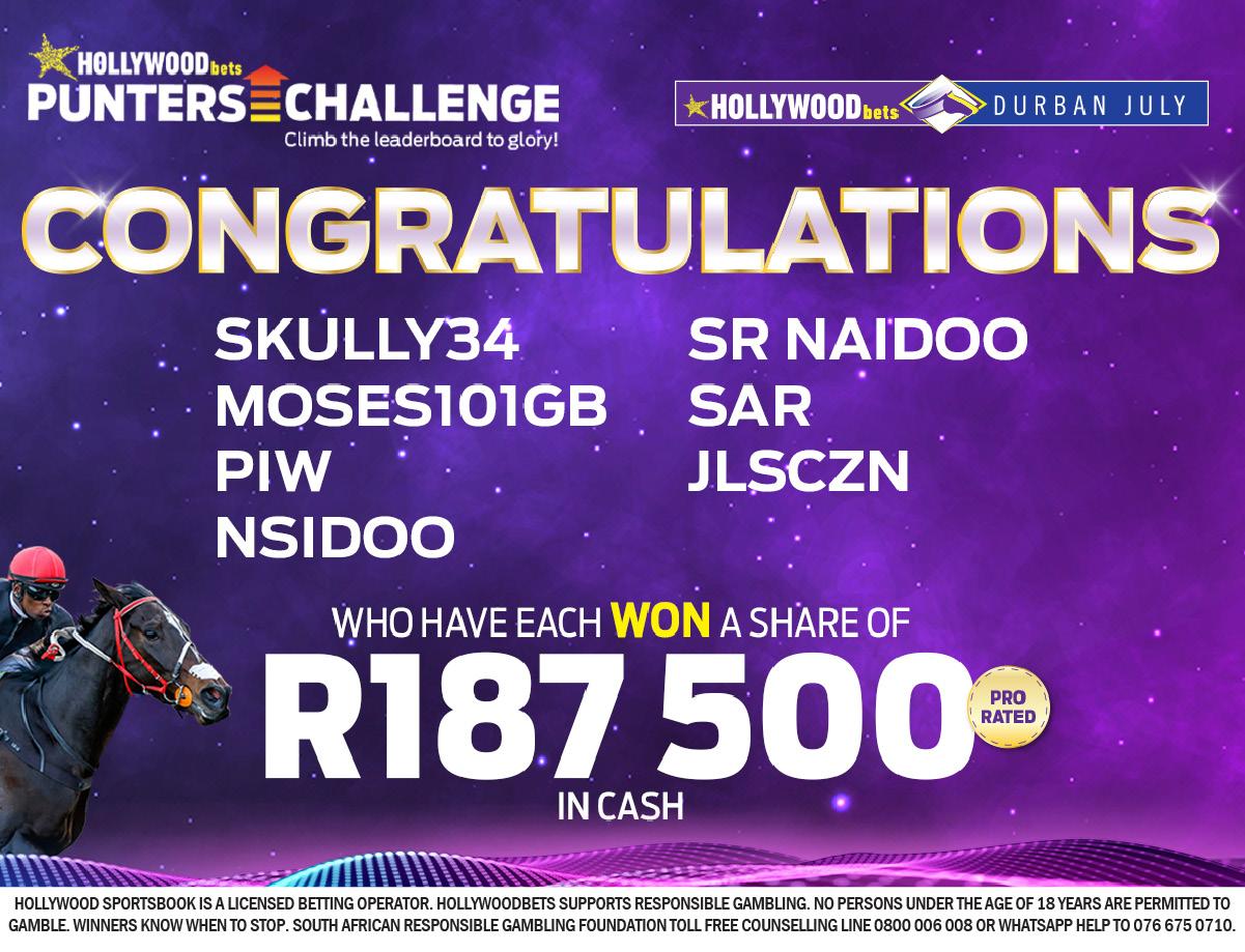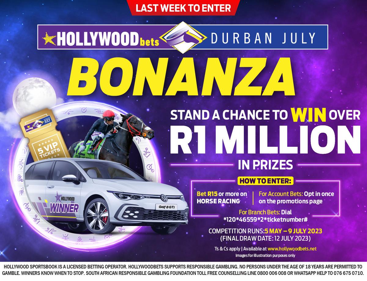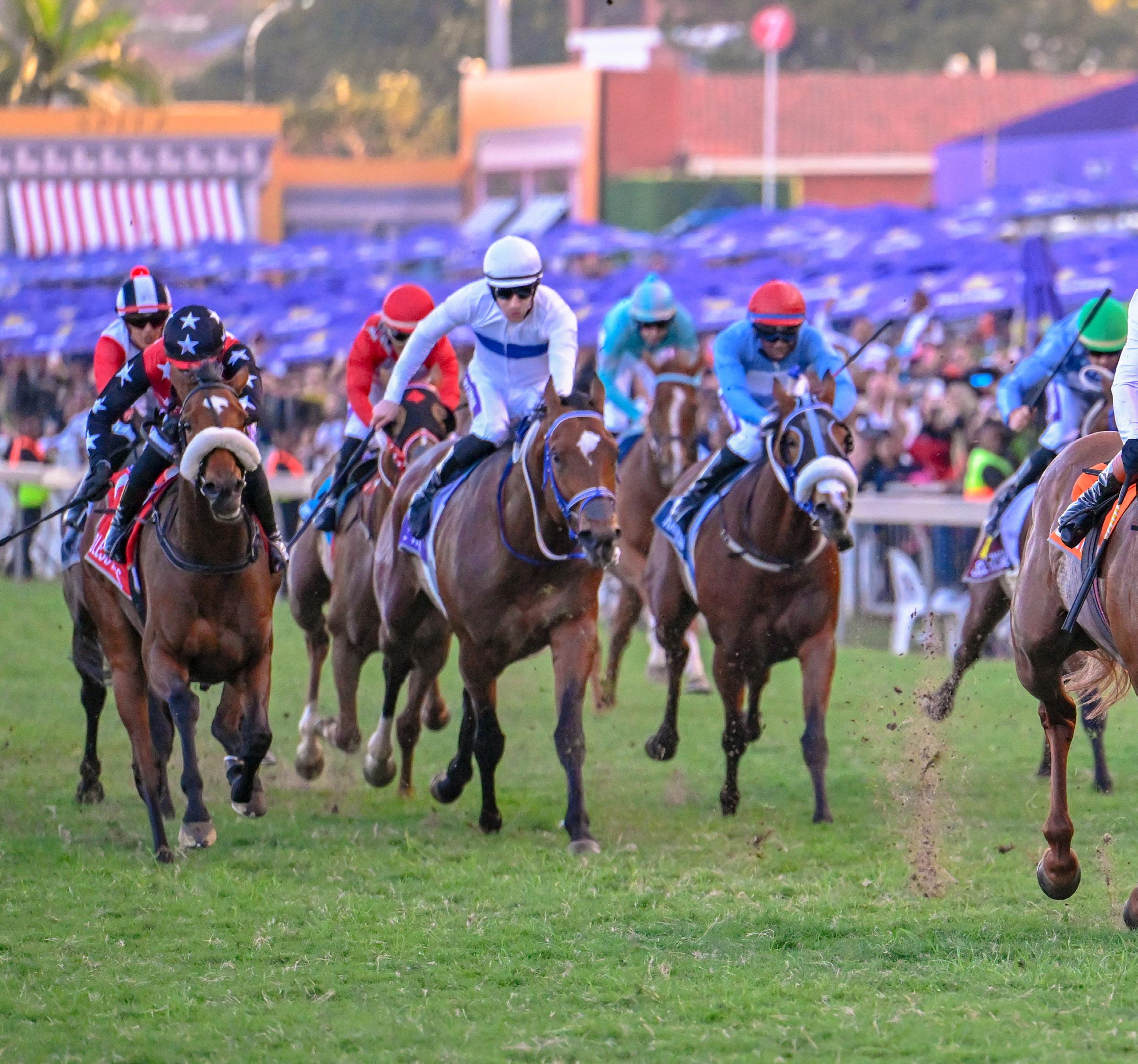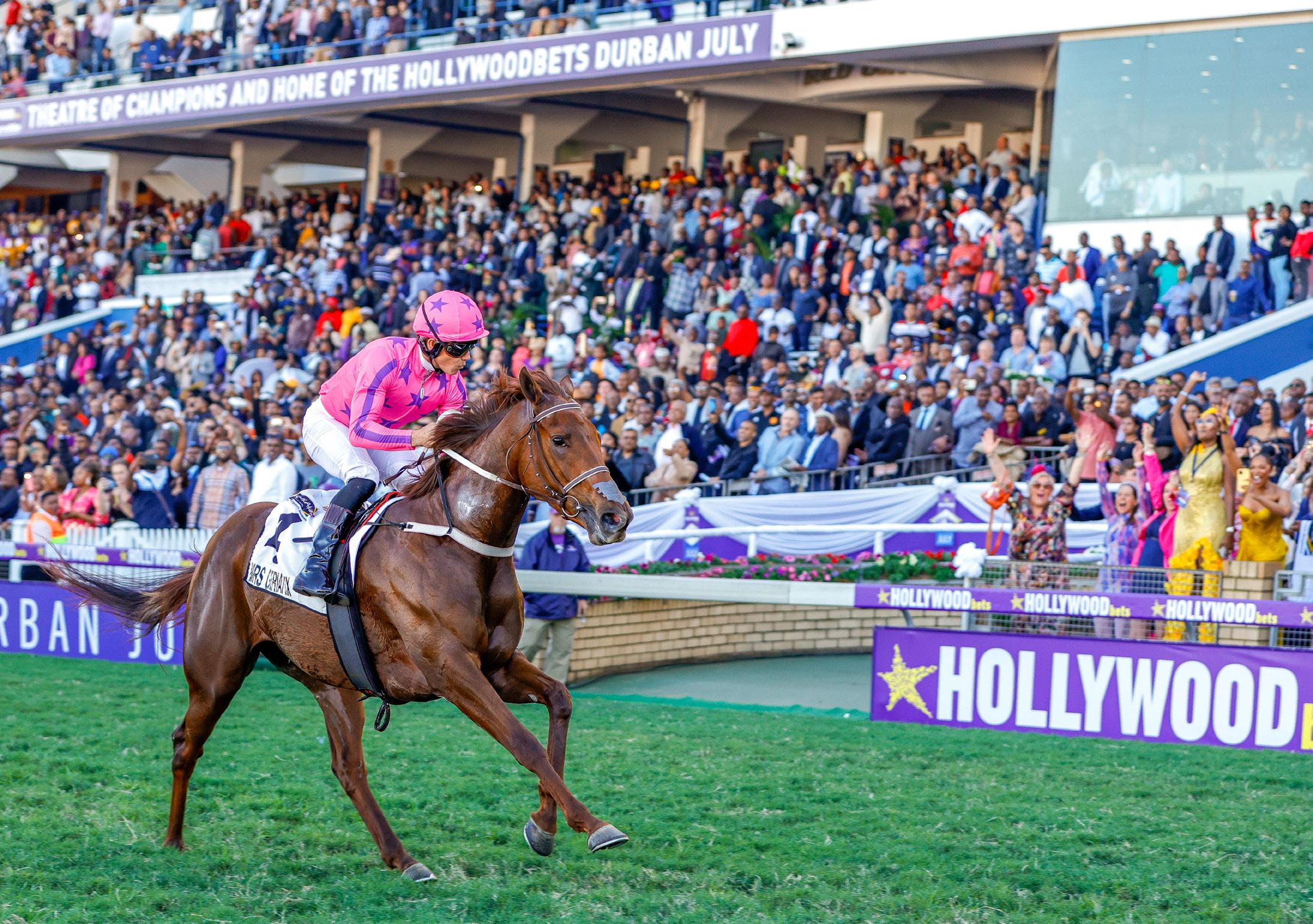 ASponsored for the second year by South Africa’s leading bookmakers, the R5 million Gr1 Hollywoodbets Durban July produced a thrilling finish that had the estimated near 50 000 crowd on their feet as favourite See It Again and his senior Winchester Mansion went head-to-head in a nail-biting dash to the line.