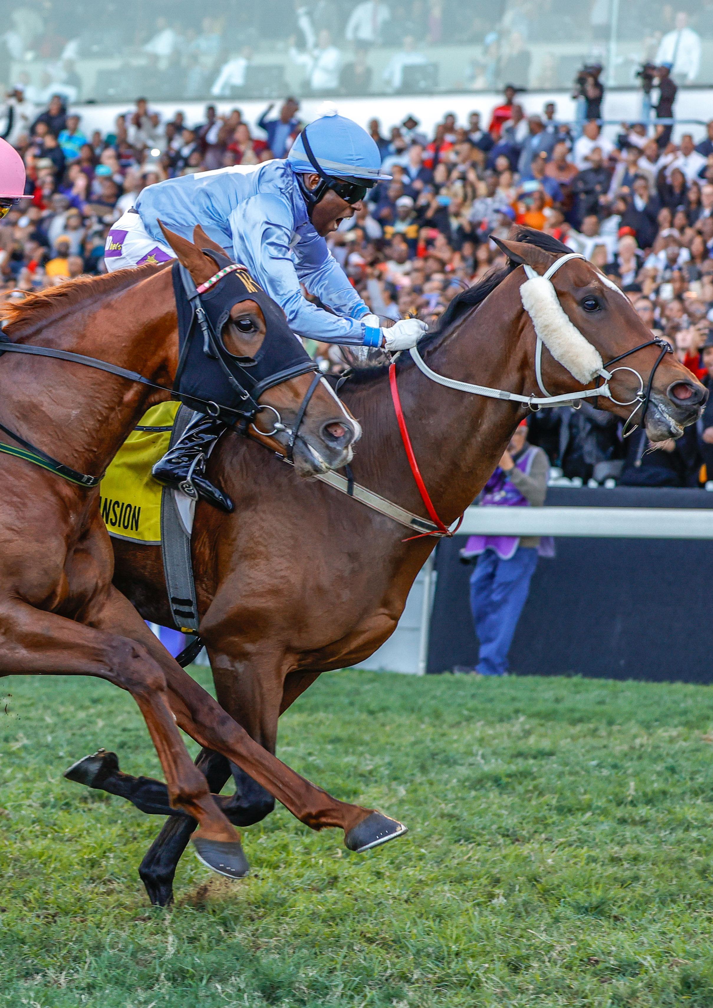 With Piere Strydom, like Frankie Dettori, a veteran champion in his last season, looking to have timed his run to perfection on Michael Roberts’ See It Again, greenhorn Kabelo Matsunyane had other ideas as he coaxed every ounce of effort out of Winchester Mansion.