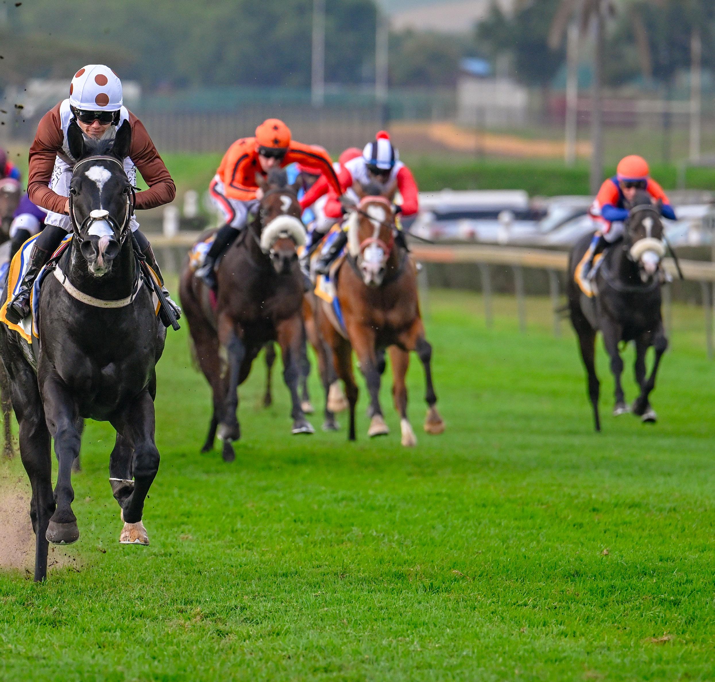 With the carryover jackpot reaching a pool of nearly R4,3 million, Sean Tarry celebrated his sixteenth Hollywoodbets Scottsville Gr1 winner as the Magical Lady Syndicate’s unbeaten Mrs Geriatrix stormed to victory in the R700 000 Gr1 Allan Robertson Championship.