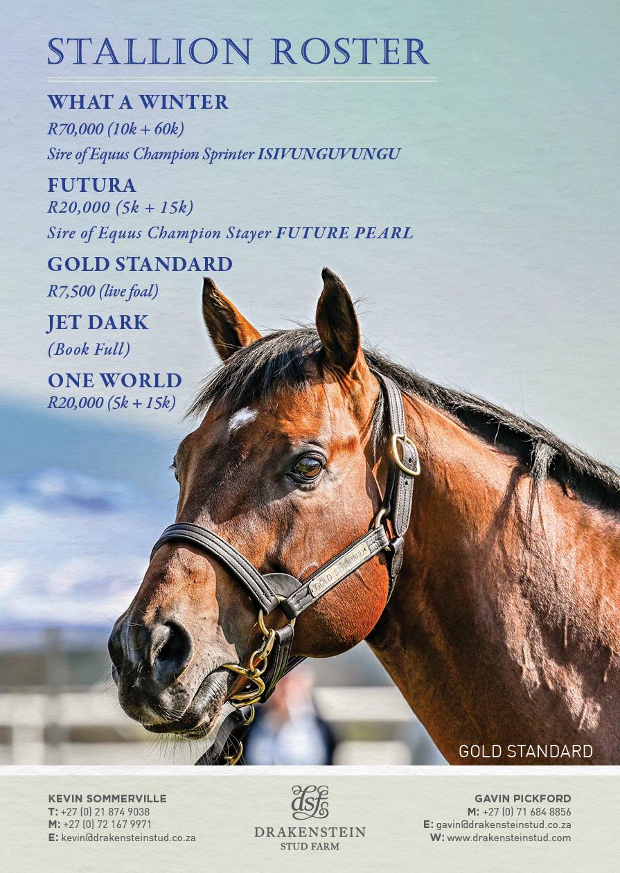 A monument to all the best qualities of the modern thoroughbred, Jet Dark was a multiple champion at both three and four, he raced sound over four seasons and scored five times at Gr1 level. Twice a winner of both the Gr1 L’Ormarins Queen’s Plate and Champions Cup, he went out in a blaze of glory in the Gr1 Cape Town Met.