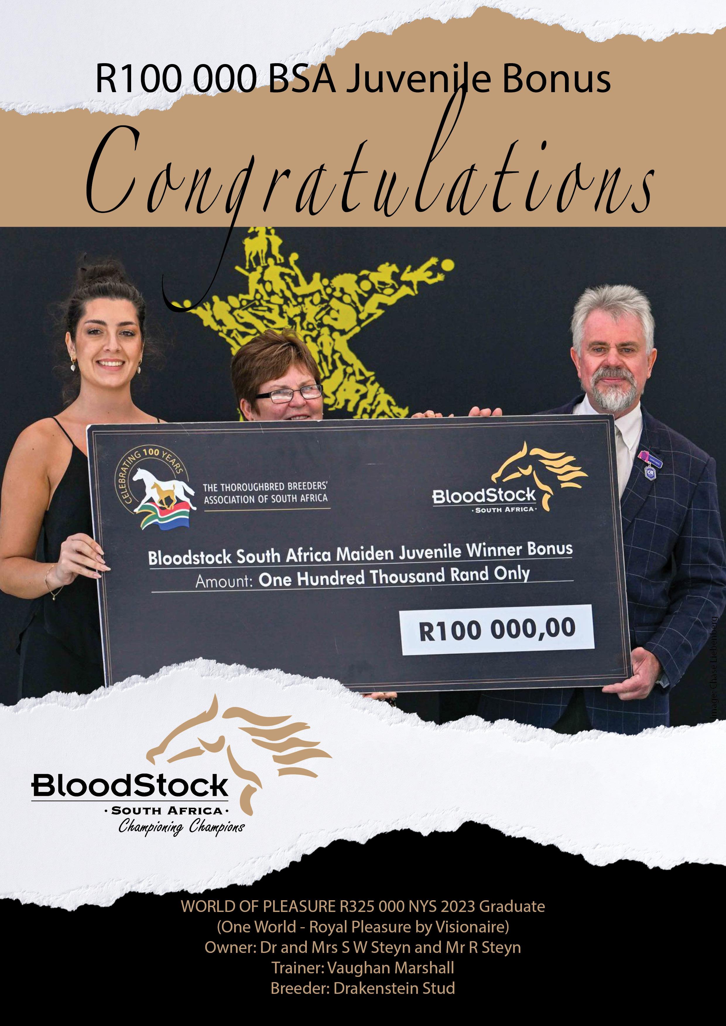 When Stinky parted ways with Ruiters in 2023, Purple Pitcher was sent to up-and-coming lady trainer Robyn Klaasen, with about 30 other runners spread between the Marwing brothers, Tony Peter, Lunga Gila and Jannie Borman. “I try to support small trainers because I don’t like to see anyone struggling. I come from struggling, and I know how it feels.”