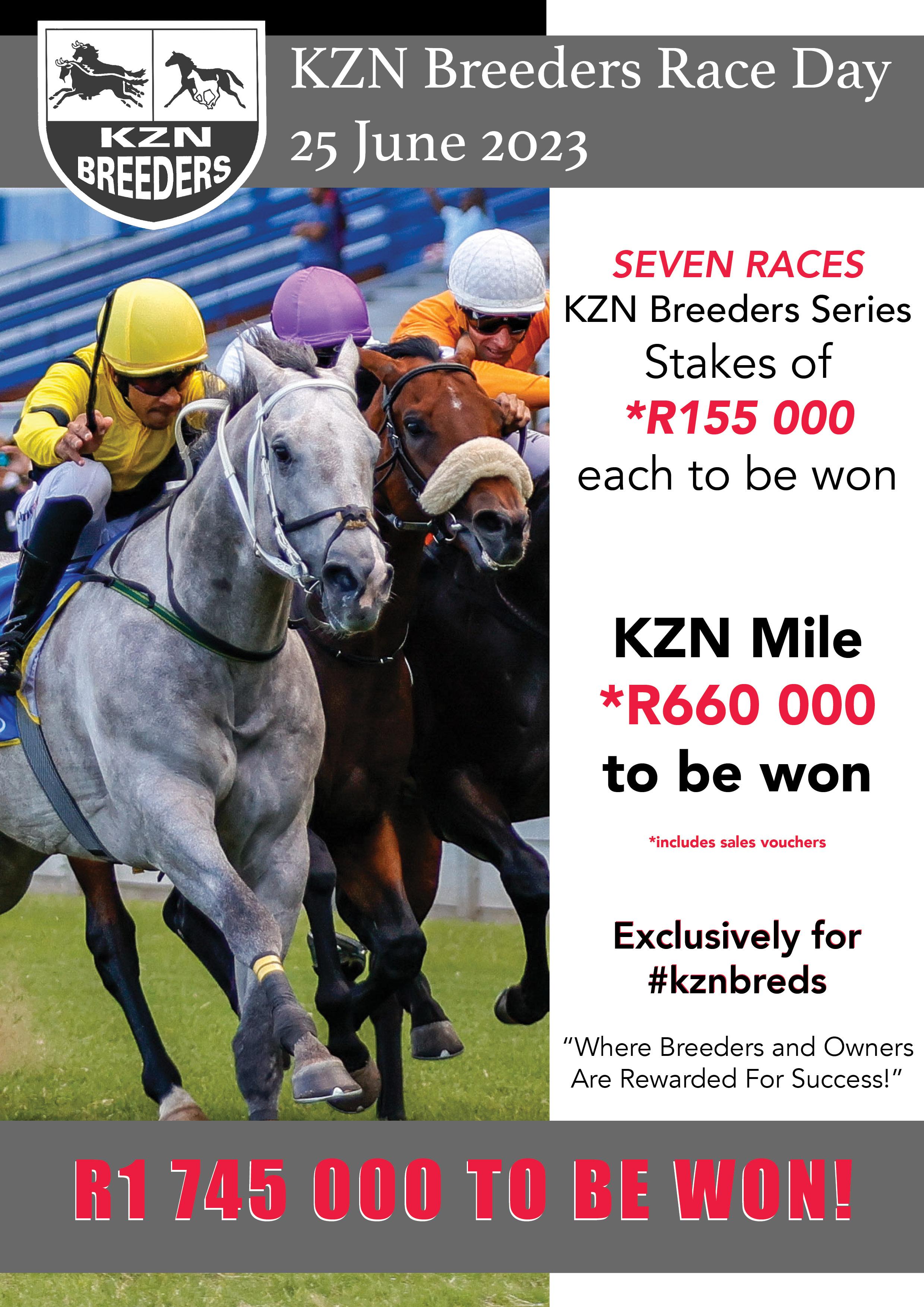 first two starts, is another fine advertisement for the KZN Sale, with the son of Canford Cliffs a R90 000 purchase from the 2022 KZN Yearling Sale. Buyers will be spoiled for choice at this year’s auction, with many of South Africa’s top stallions represented at the 2023 KZN Sale.