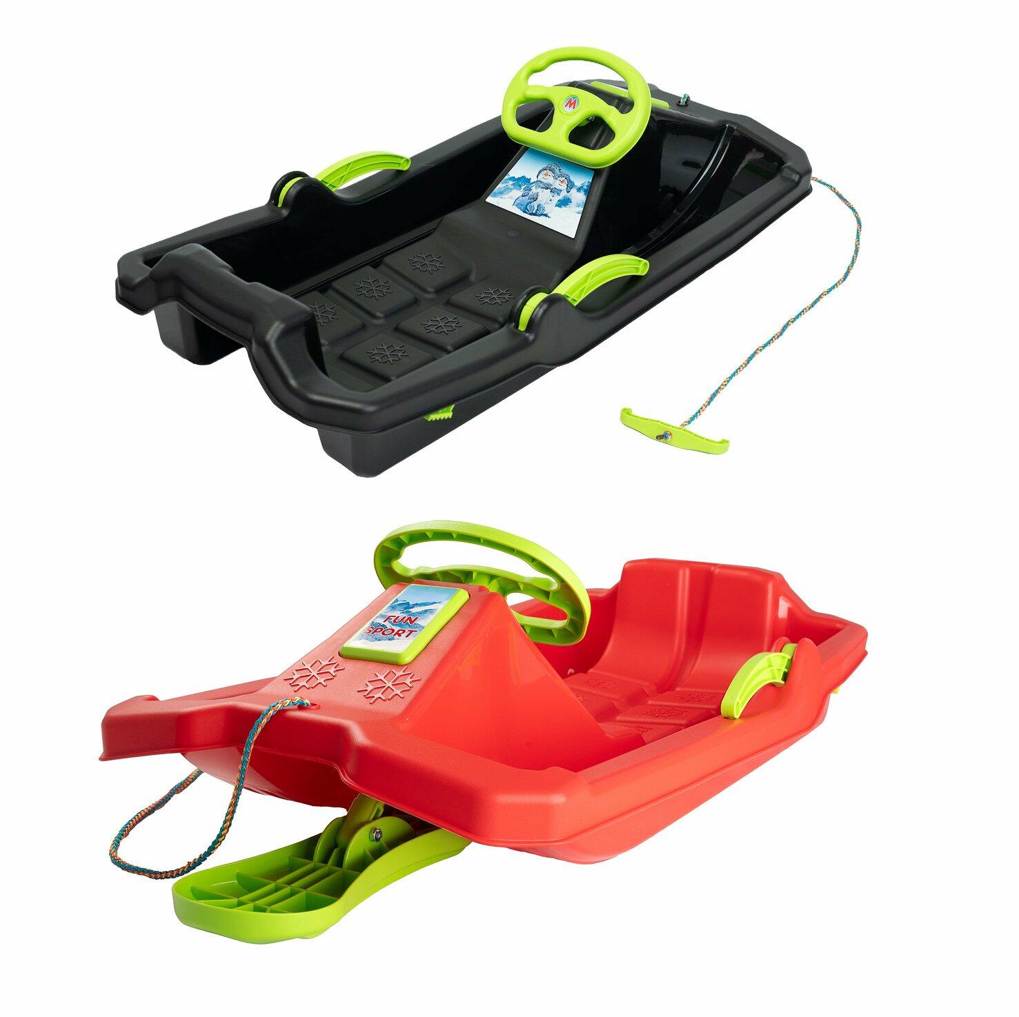 SMXSNOWBOBis a steering sled that is built to last. Withsteering functionand double-sided foot brake. Pullcord with handle and quickrelease. Size:119x 50x 38cm.