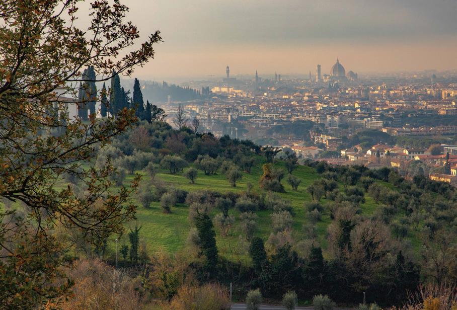 Emanuele Repetti, nel suo Dizionario geograco della Toscana del 1833, de nì il territorio di Bagno a Ripoli “il giardino più delizioso, più fruttifero, più popolato di ville, di palazzi, di chiese, di abitazioni fra quanti formano ghirlanda alla bella Firenze”. Porta del Chianti da un lato, perno della Valle dell’Arno dall’altro, questo comune di circa 26mila abitanti, che dista quattro chilometri dal centro di Firenze, è indiscutibilmente uno dei gioielli delle colline orentine. Uno dei motori più importanti dell’economia locale è il settore moda: alcune delle maggiori maison al mondo hanno scelto Bagno a Ripoli per svilupparsi, creando un vero e proprio distretto della pelle e del lusso. In costante crescita sono anche l’industria artigianale, farmaceutica e biomedicale che contano sulla presenza di aziende e multinazionali di rilevanza internazionale. Poi ci sono i frutti delle campagne, vera e propria eccellenza del territorio, a partire dal vino e dall’olio, riconosciuti e premiati per la loro altissima qualità a livello internazionale e prodotti da aziende leader di fama mondiale. Non mancano di certo i luoghi d’arte e di culto: Bagno a Ripoli vanta un patrimonio culturale tutto da scoprire, oltre che percorsi naturalistici a acciati su panorami che sembrano usciti da un quadro rinascimentale. Accanto a ville e dimore storiche come Villa La Tana, la Villa Medicea di Lilliano o quella di Mondeggi, si segnala la cinquecentesca Fonte della Fata Morgana attribuita al Giambologna, originale e suggestivo ninfeo collocato nella frazione di Grassina dedicato all’enigmatica maga dal potere ringiovanente. Vicino Ponte a Ema, sorge invece il trecentesco Oratorio di Santa Caterina delle Ruote con i suoi interni riccamente a rescati dal maestro Spinello Aretino nel XIV secolo, oggi casa di mostre ed esposizioni temporanee.