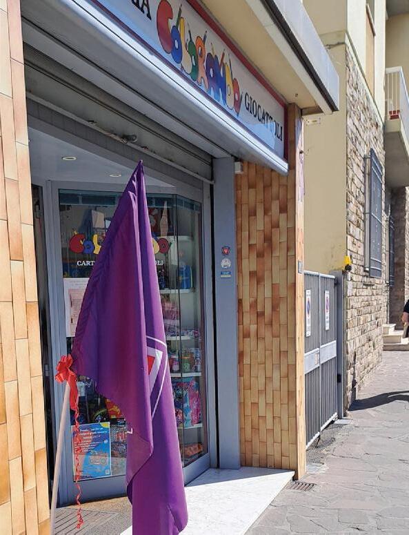 Bandiere e cartelli viola per le strade e nelle botteghe di Bagno a Ripoli