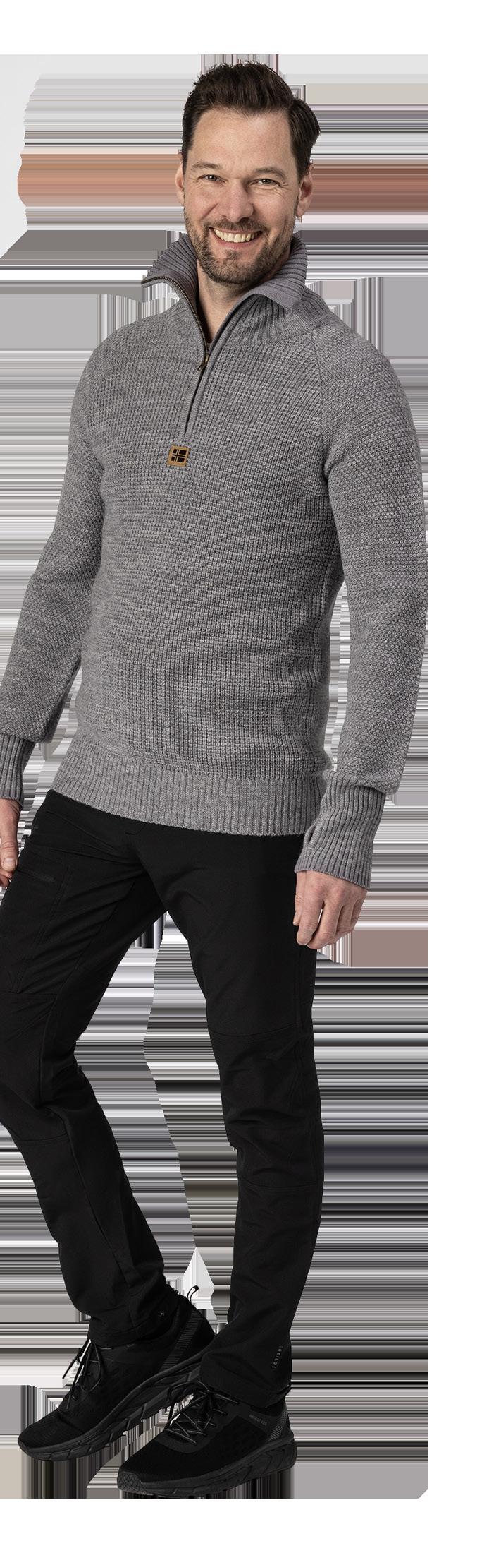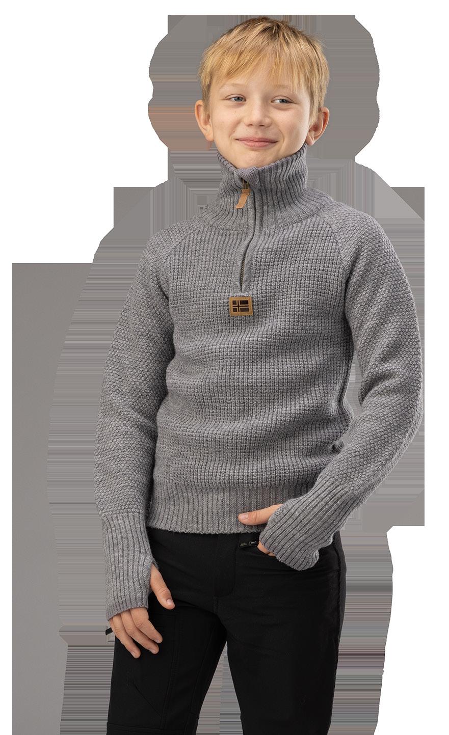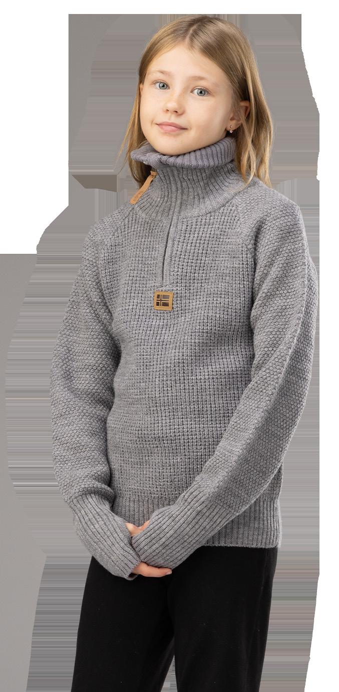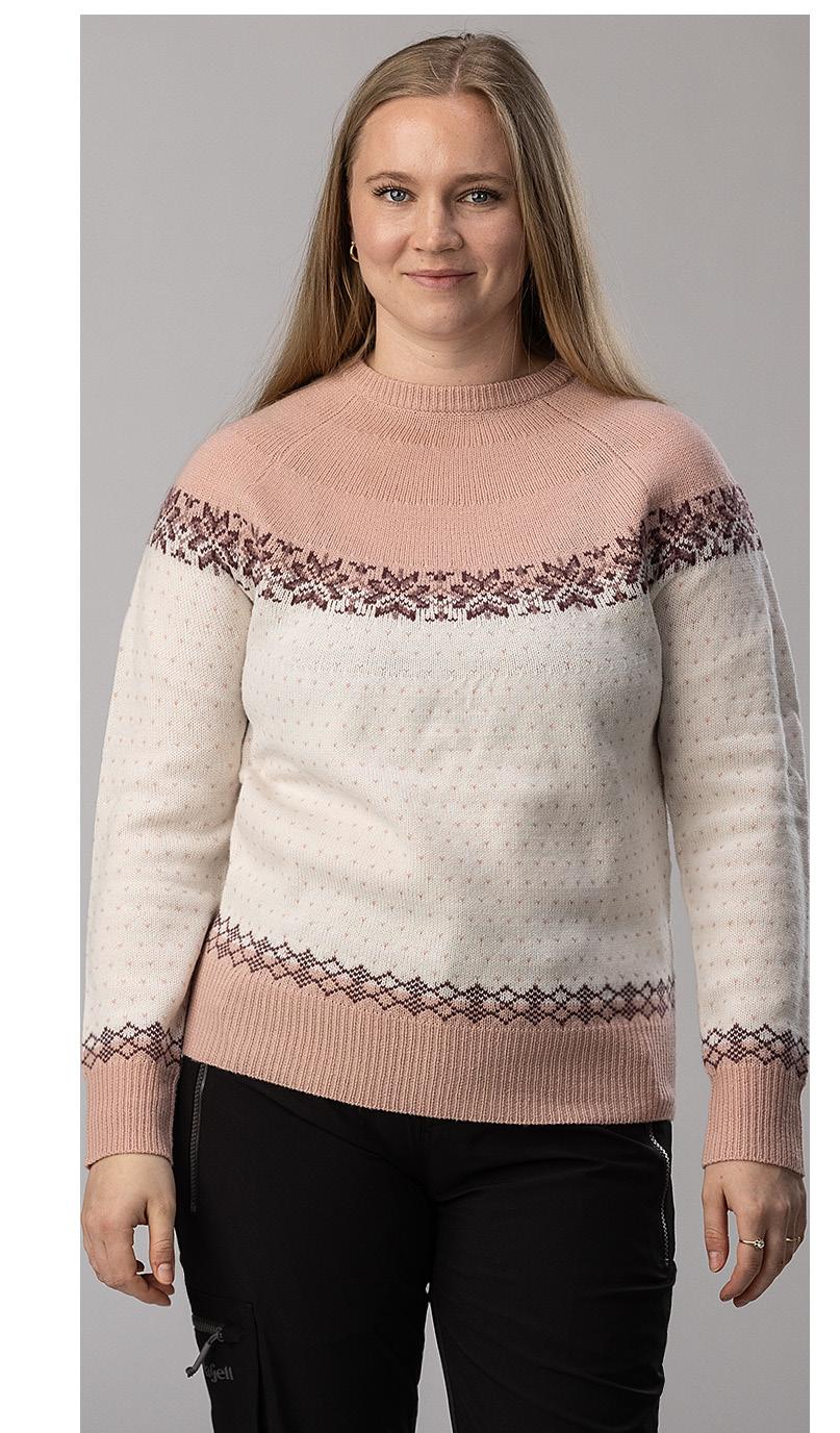 Ull- og akrylblanding på armer og hals