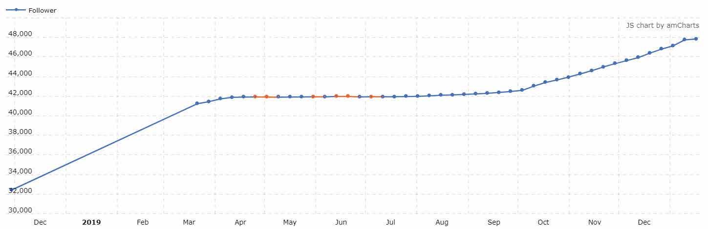 Crescita del profilo Instagram di Nordica (fonte: Ninjalitics)