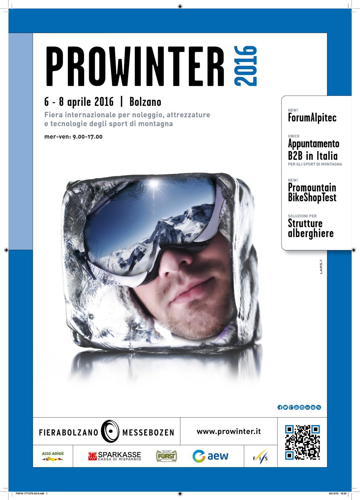 cicloturismo e mtb: il “pianeta del pedale”, che per la montagna rappresenta un’opportunità di sviluppo dell’offerta turistica strettamente legata al territorio, dalle molte analogie e sinergie con il consolidato “pianeta neve”. Il format proposto sarà quello del Bike Shop Test, organizzato da Sport Press e Moon, ma dedicato in particolare alle proposte rental e eBike. Tornano inoltre gli Snow Industry Awards, organizzati dal nostro gruppo editoriale. Dettagli e approfondimenti sui prossimi numeri. www.fierabolzano.it/prowinter