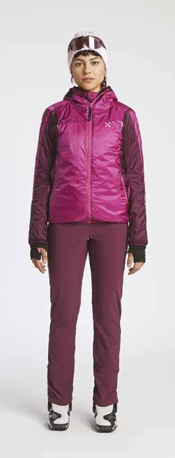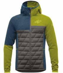 Un guscio estremamente tecnico, leggero e semi-caldo, a prova di qualsiasi vento. Ideale per lo sport outdoor aerobico in tutte le stagioni. È costruito con tre strati di tessuti diversi, ognuno con una specifica caratteristica. Il tessuto frontale, con le maniche e il cappuccio, è in Microshell 100% windproof, che impedisce all’a ria di entrare e diminuire la temperatura cor porea. La fodera interna è in Warmshell Breathe che, a contatto con il traspirante Microshell sul dorso, aumenta la capacità di espulsione del sudore per tenere il corpo asciutto. Il cappuccio è compatibile con l’utilizzo del casco. Il guscio presenta una tasca frontale molto larga, una interna in power-mesh per utensili vari o anche per le pelli di foca, e una sulle maniche con una doppia funzione: sia per riporre oggetti che come custodia della giacca stessa, che può essere facilmente compressa per essere trasportata occupando meno spazio possibile.