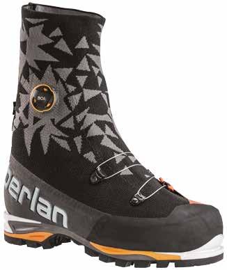 La risposta all’alpinismo tecnico e all’arrampicata su giaccio, che offre una costruzione ultraleggera all’avanguardia. La ghetta esterna integrata, in maglia sintetica resistente e senza cuciture, si adatta con precisione ai movimenti dello scalatore, garantendo protezione da rocce e detriti. Il riflettore Recco, integrato nello scarpone, permette un rintracciamento immediato in caso di smarrimento o di emergenza. Il sistema BOA Fit System avvolge la ghetta e consente una regolazione veloce e precisa della scarpetta interna dall’esterno. La membrana Gore-Tex Insulated Comfort garantisce una protezione impermeabile e traspirante in ogni condizione atmosferica. Il sottopiede, in fibra di carbonio e alluminio, accentua la rigidità a supporto del rampone. L’intersuola in PU a doppia densità offre un supporto eccellente. Il battistrada Vibram Penia offre un’aderenza sicura su superfici bagnate e ghiacciate, e il sistema PCS integrato si adatta perfettamente ai principali ramponi. Prodotto in Italia, e risuolabile.